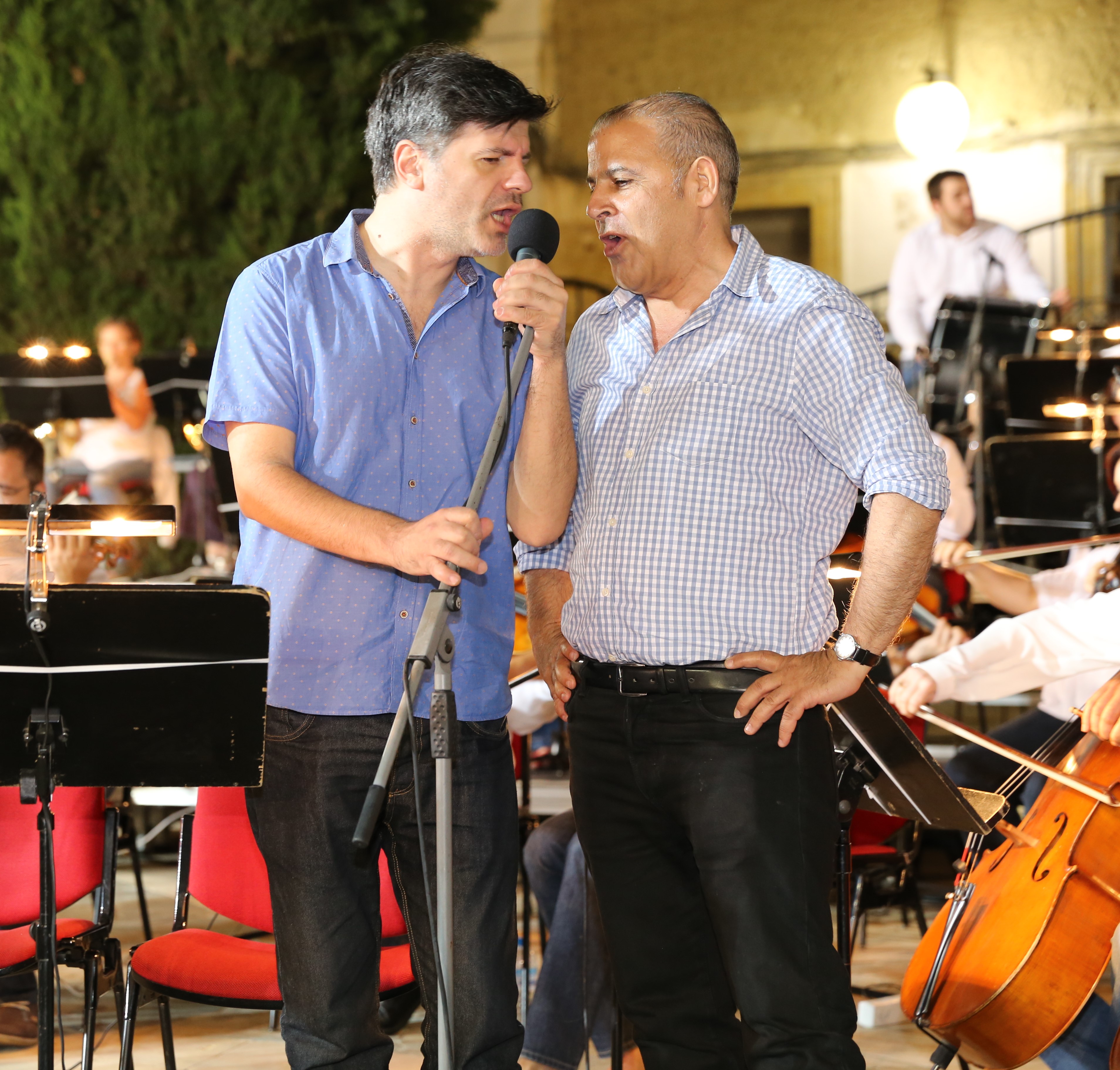 Φωτογραφία: Ο Γιώργος Χατζηπιερής με τον Φοίβο Δεληβοριά σε συναυλία του «Τεμπέλη Δράκου» με την Συμφωνική Ορχήστρα Κύπρου