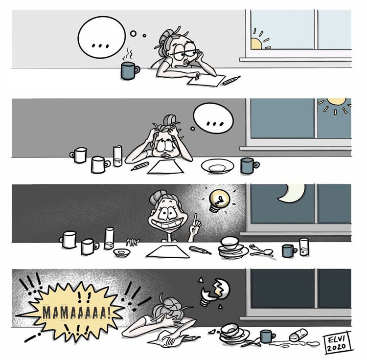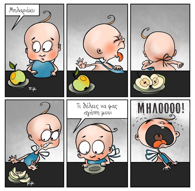 Τότε ήταν που αποφάσισα να δημιουργήσω αυτά τα μικρά σατιρικά σκίτσα που καταγράφουν τις εμπειρίες μου ως νέα μαμά. Η μητρότητα με κάνει να γελάω και να κλαίω. Μου στερεί τον ύπνο και μου δίνει μια περίεργη ενέργεια. Το πιο σημαντικό, όμως, είναι ότι με εμπνέει.»