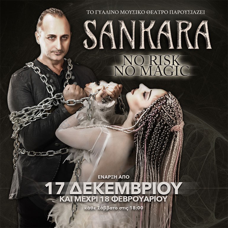 Δεν είναι ακριβώς θεατρική παράσταση, ούτε ακριβώς Χριστουγεννιάτικη, αλλά σίγουρα πρόκειται για το υπερθέαμα των φετινών Χριστουγέννων! Ο μάγος Σανκάρα, πιστός στο ραντεβού του όπως κάθε χρόνο, έρχεται για να παρουσιάσει σε μικρούς και μεγάλους νούμερα που ακροβατούν ανάμεσα στο ρεαλισμό και στην ψευδαίσθηση στο Γυάλινο Μουσικό Θέατρο.