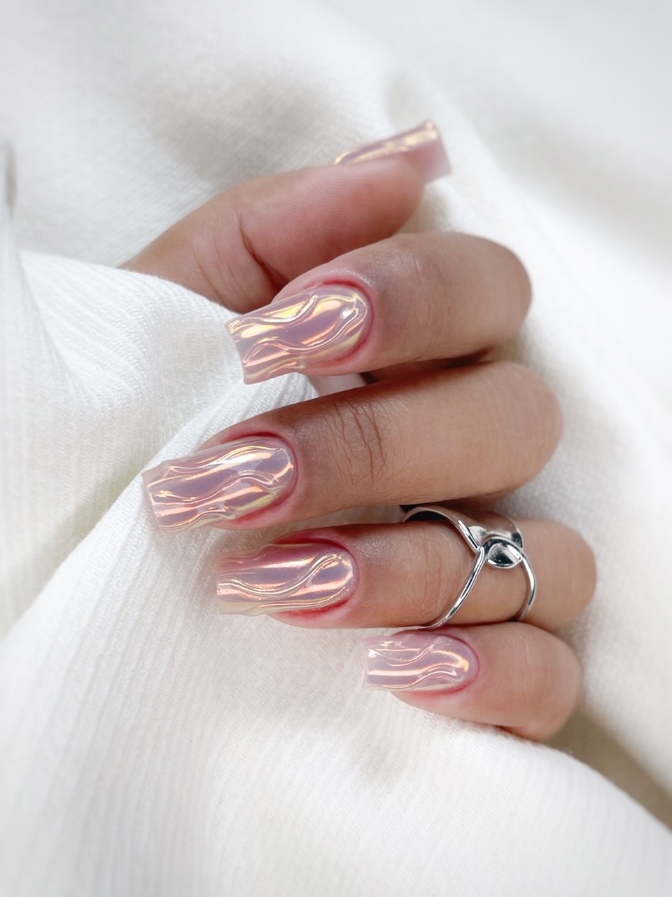 Δοκιμάστε και εσείς τα molten metallics, τα απίστευτα όμορφα και φουτουριστικά νύχια, που τα μεταλλικά τους σχέδια φαίνονται σα λιωμένα, δίνοντας μια εξωπραγματική αίσθηση αλλά ταυτόχρονα κάνουν τα νύχια σας σαν καμβά ενός ακριβού κοσμήματος, ανεξάρτητα από το σχέδιο & το χρώμα, που θα επιλέξετε.