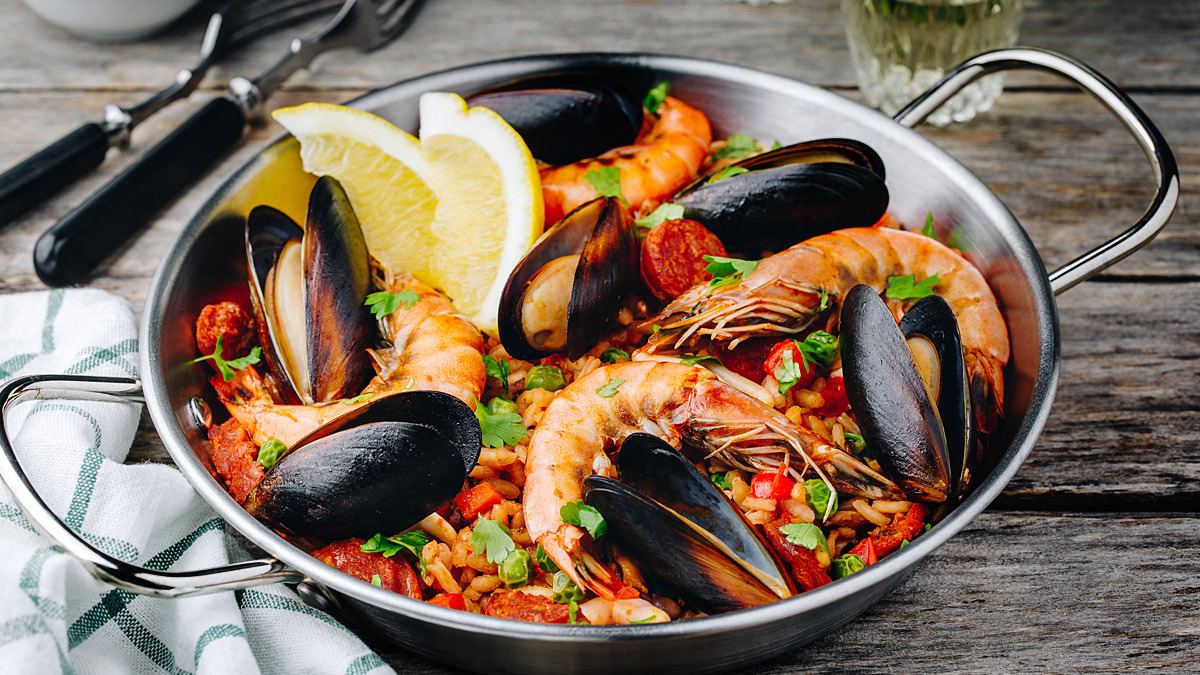- Δύο λεπτά πριν ετοιμαστεί το κριθαράκι προσθέτουμε τα μύδια, το ξύσμα από το λεμόνι στις γαρίδες, τον χυμό από τα καλαμάρια και τα βάζουμε όλα στο τηγάνι. Βράζουμε για 1-2 λεπτά μέχρι να ανοίξουν τα μύδια.