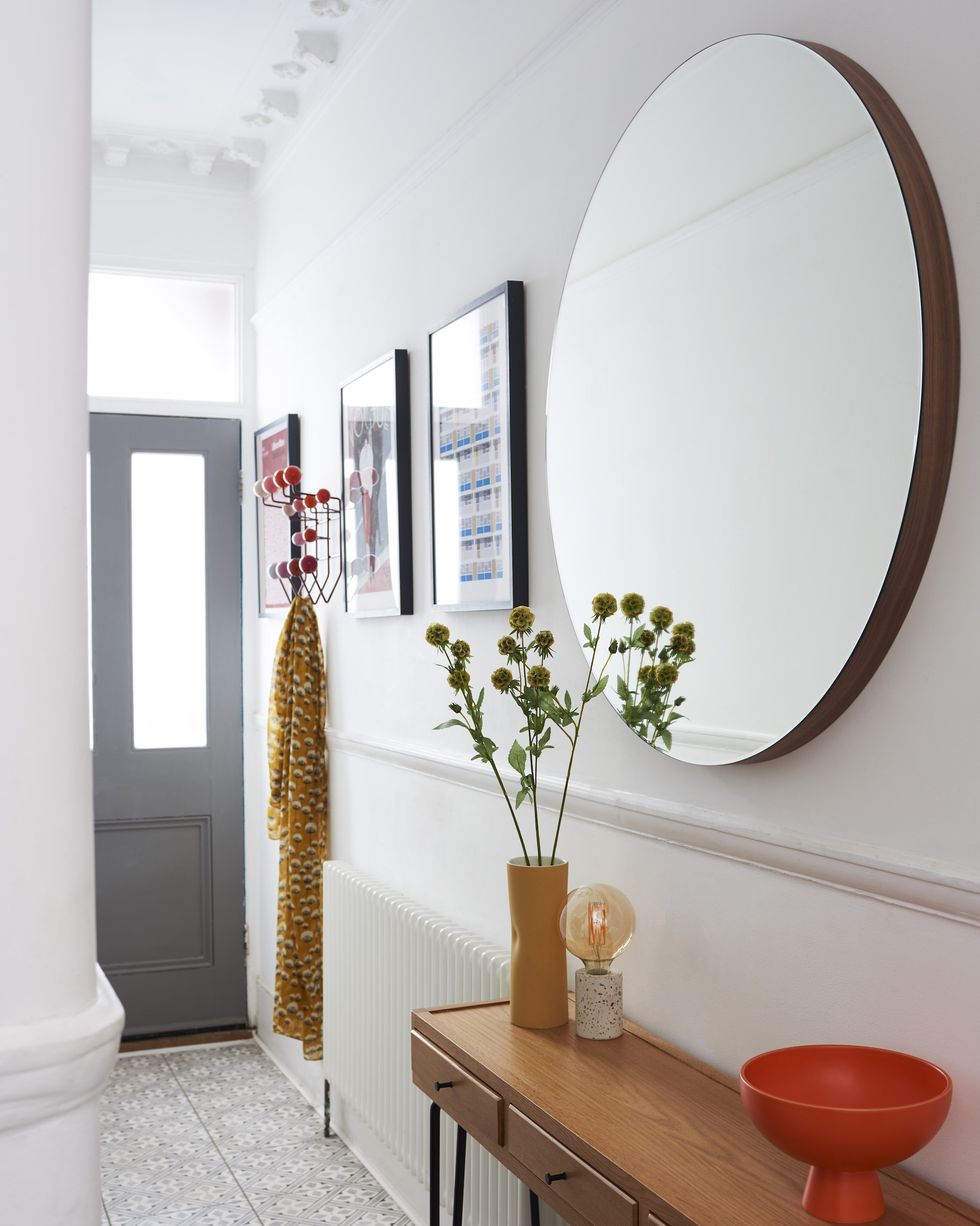 Δημιουργήστε την ψευδαίσθηση ότι το χολ σας είναι μεγαλύτερο προσθέτοντας καθρέφτες. Οι καθρέφτες αντανακλούν το φως, κάνοντας τον χώρο να φαίνεται πιο ευρύχωρος και πιο φωτεινός, ενώ σας δίνουν την ευκαιρία να ελέγξετε για μια τελευταία φορά την εμφάνισή σας πριν βγείτε από το σπίτι.