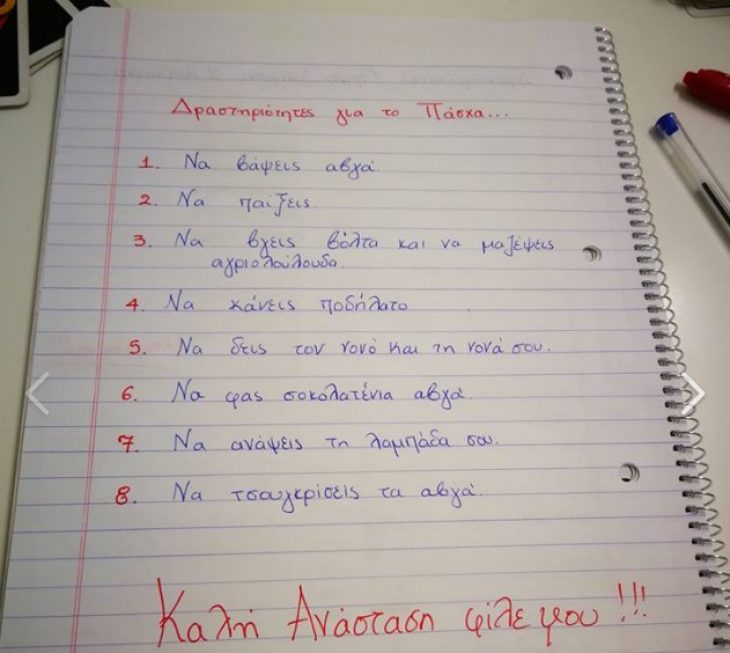 Γι' αυτό και η δασκάλα που έδωσε αυστηρές οδηγίες για τις δραστηριότητες του Πάσχα, που μεταξύ άλλων είναι το τσούγκρισμα των αυγών και το παιχνίδι, έγινε αμέσως viral.