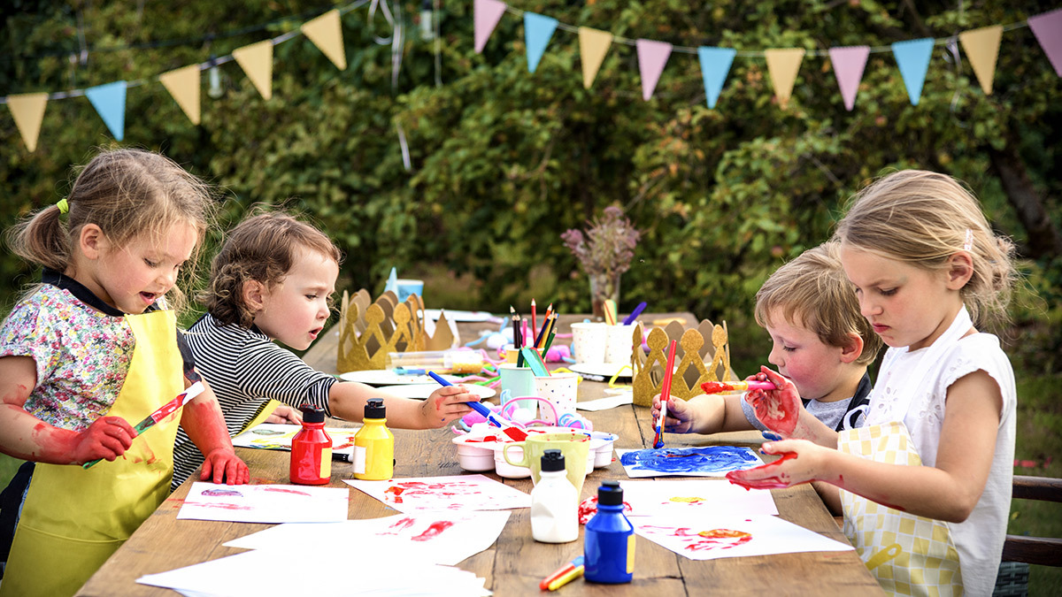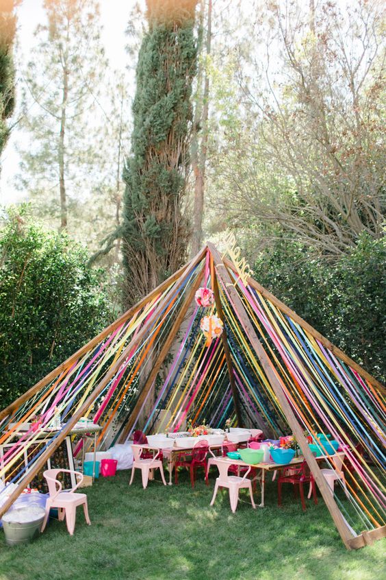 Τα παιδιά δεν χρειάζονται ακριβή ή εξεζητημένη διακόσμηση για να είναι χαρούμενα. Ο υπαίθριος χώρος αρκεί από μόνος του για να τους δώσει την ευκαιρία να τρέξουν, να παίξουν χωρίς περιορισμούς και να περάσουν όμορφα. Αν θέλετε να τον εμπλουτίσετε φουσκώστε μπαλόνια, γεμίστε τον πολύχρωμα μαξιλάρια για να κάθονται, αγοράστε χάρτινα καπελάκια, χρωματιστές κορδέλες ή σφυρίχτρες και διακοσμήστε τον με λουλούδια. Επίσης, επιστρατεύστε τις παιδικές σκηνές και κάποια παιχνίδια από το σπίτι για ακόμα πιο ζεστή ατμόσφαιρα. Αυτές οι πινελιές αρκούν για να δείτε τα μάτια τους να λάμπουν από χαρά!