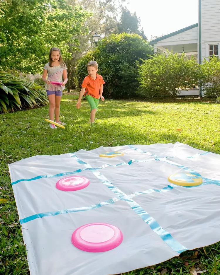 Με μερικά φρίσμπι, λίγη κολλητική ταινία και μια κουρτίνα μπάνιου, μπορείτε να φτιάξετε μια μεγάλη τρίλιζα στην πίσω αυλή ή το πάρκο που θα κάνετε το πάρτι. Με την κολλητική ταινία σχηματίζετε τα τετραγωνάκια καθώς και τα σύμβολα Χ και Ο πάνω στα φρίσμπι. Το παιχνίδι μπορεί να παιχτεί με δύο τρόπους: στον πρώτο πιο εύκολο τρόπο, τα παιδιά τοποθετούν το φρίσμπι στο τετράγωνο που επιθυμούν μέχρι να σχηματίσουν τρίλιζα. Στον 2ο τρόπο, τα παιδιά πετούν το φρίσμπι προσπαθώντας να πάει στο τετραγωνάκι που επιθυμούν. Αν δεν τα καταφέρουν, η προσπάθειά τους ακυρώνεται και δοκιμάζουν ξανά όταν έρθει η σειρά τους.