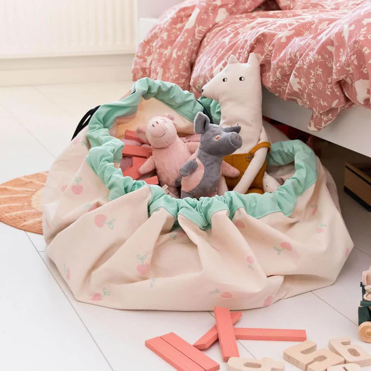 Περνώντας στα παιχνίδια, μπορείτε να χρησιμοποιήσετε μεγάλα κουτιά αποθήκευσης παιχνιδιών για τα μεγάλα αντικείμενα και μικρότερα κουτιά για φιγούρες, αυτοκινητάκια και ό,τι άλλα μικρά παιχνιδάκια έχει στη συλλογή του. Μια πολύ μεγάλη τάση είναι οι σάκοι/στρώματα οργάνωσης παιχνιδιών. Χρησιμεύουν για την γρήγορη και εύκολη αποθήκευση παιχνιδιών και αντικειμένων, ενώ μπορούν να γίνουν στρώμα για να παίζει το παιδί σας. Μεταφέρεται εύκολα για να το παίρνετε μαζί σας ακόμα και σε ταξίδια, έχει ρυθμιζόμενα σχοινιά για να ανοίγει και να κλείνει με απλές κινήσεις και κρεμιέται παντού.
