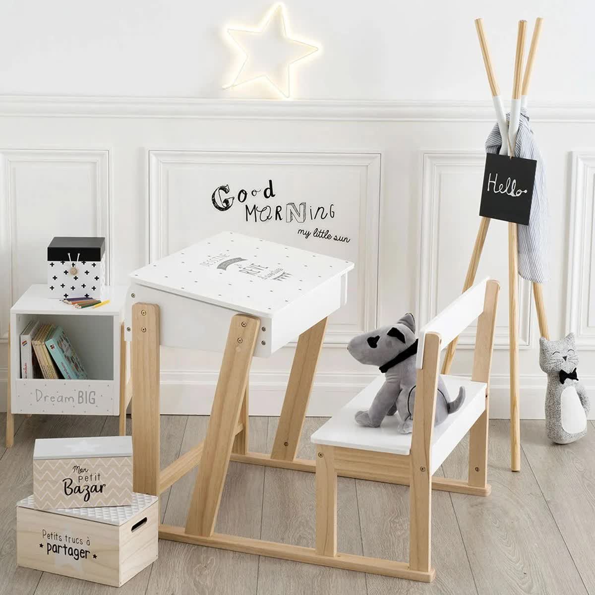 Πρώτο και κύριο είναι το τραπεζάκι ή θρανίο στο οποίο θα ζωγραφίζει, θα διαβάζει και θα κάνει τυχόν εργασίες που του έχουν ανατεθεί από το σχολείο. Σε κοντινή απόσταση τοποθετήστε μια βιβλιοθήκη που θα το βοηθάει να οργανώνει και να φροντίζει, να τακτοποιεί βιβλία, τετράδια και μπλοκ ζωγραφικής.