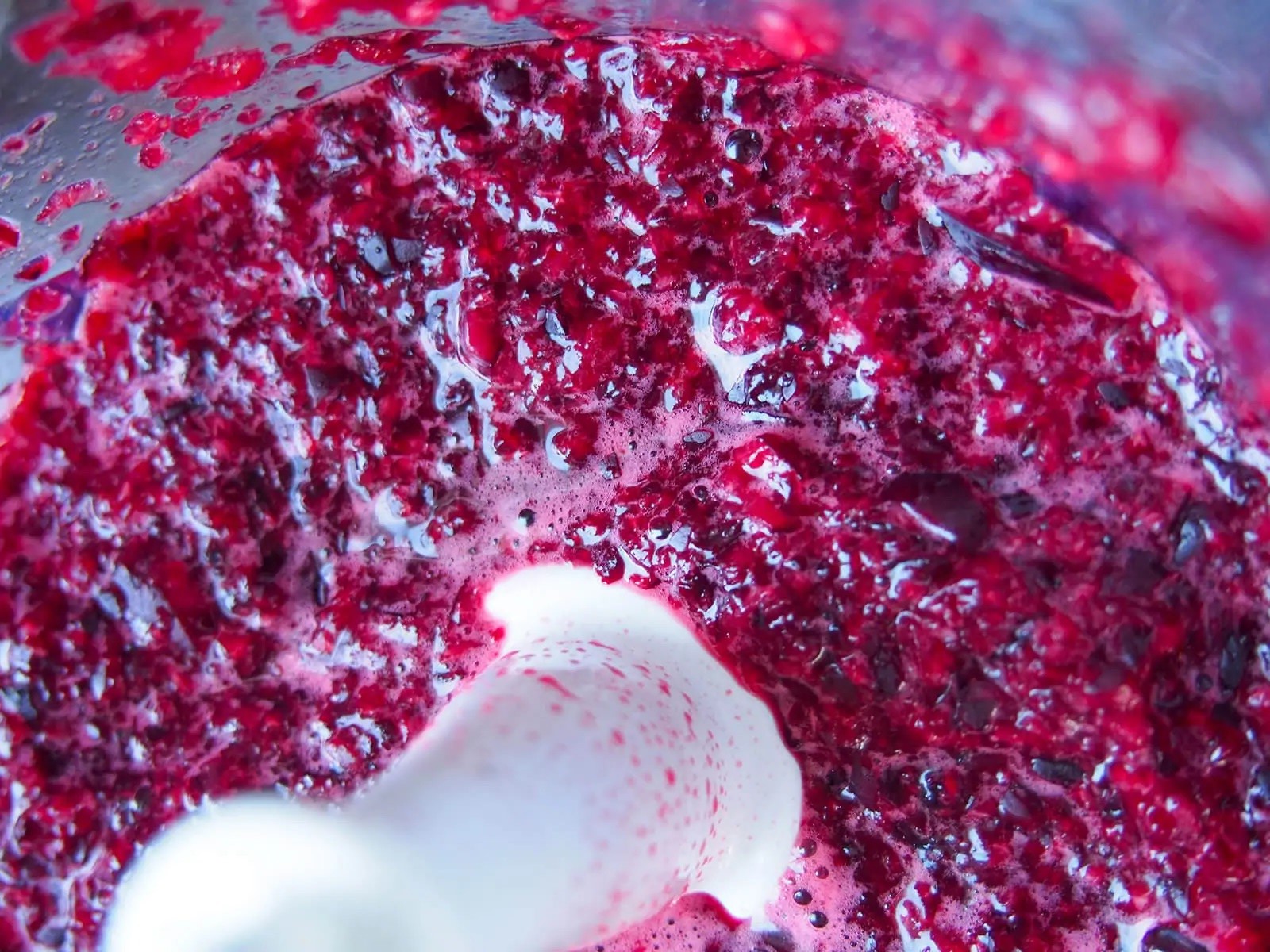 Ανακατεύουμε τα κεράσια στο μίξερ μέχρι να ομογενοποιηθούν (μπορούμε να αφήσουμε μερικά μικρά κομμάτια).