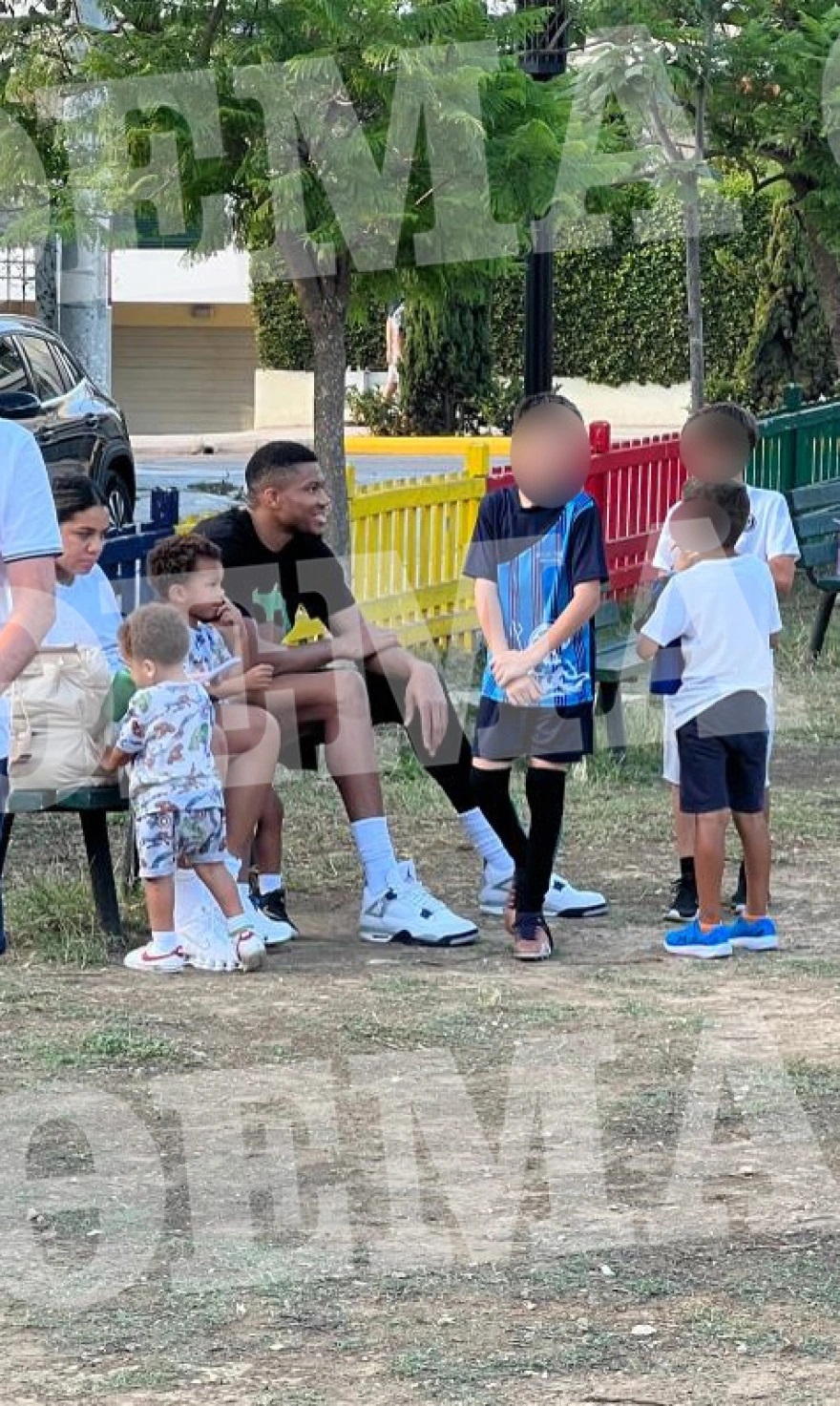 Ο Γιάννης, οι δύο γιοι του και η σύντροφός του Μαράια που είναι έγκυος στο τρίτο τους παιδί, περνούν τις διακοπές του εδώ και λίγες εβδομάδες στην Ελλάδα συνδυάζοντας ξεκούραση και προπονήσεις.