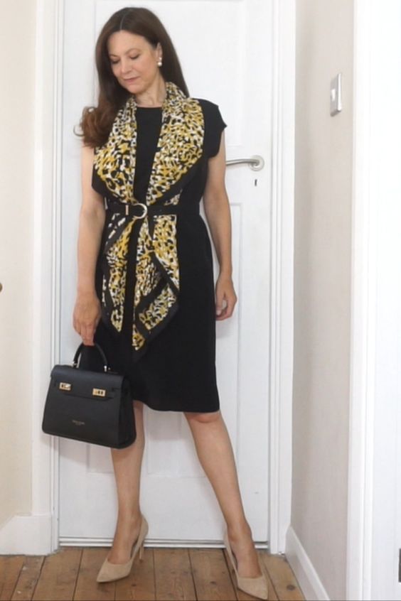 Ο «κάθετος άξονας» που λέγαμε, μπορεί κάλλιστα να τονιστεί με ένα φουλάρι ή μαντήλι που θα πέφτει μπροστά, σαν δυο μεγάλες, κάθετες ρίγες.