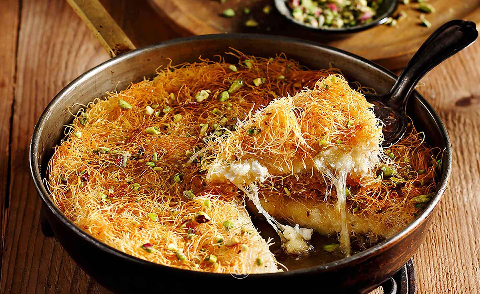 - Παραδοσιακά το κιουνεφέ στην Ανατολή, γίνεται σε τηγάνι και στο σερβίρουν καυτό, σιροπιάζοντάς το καυτό, μπροστά σου.