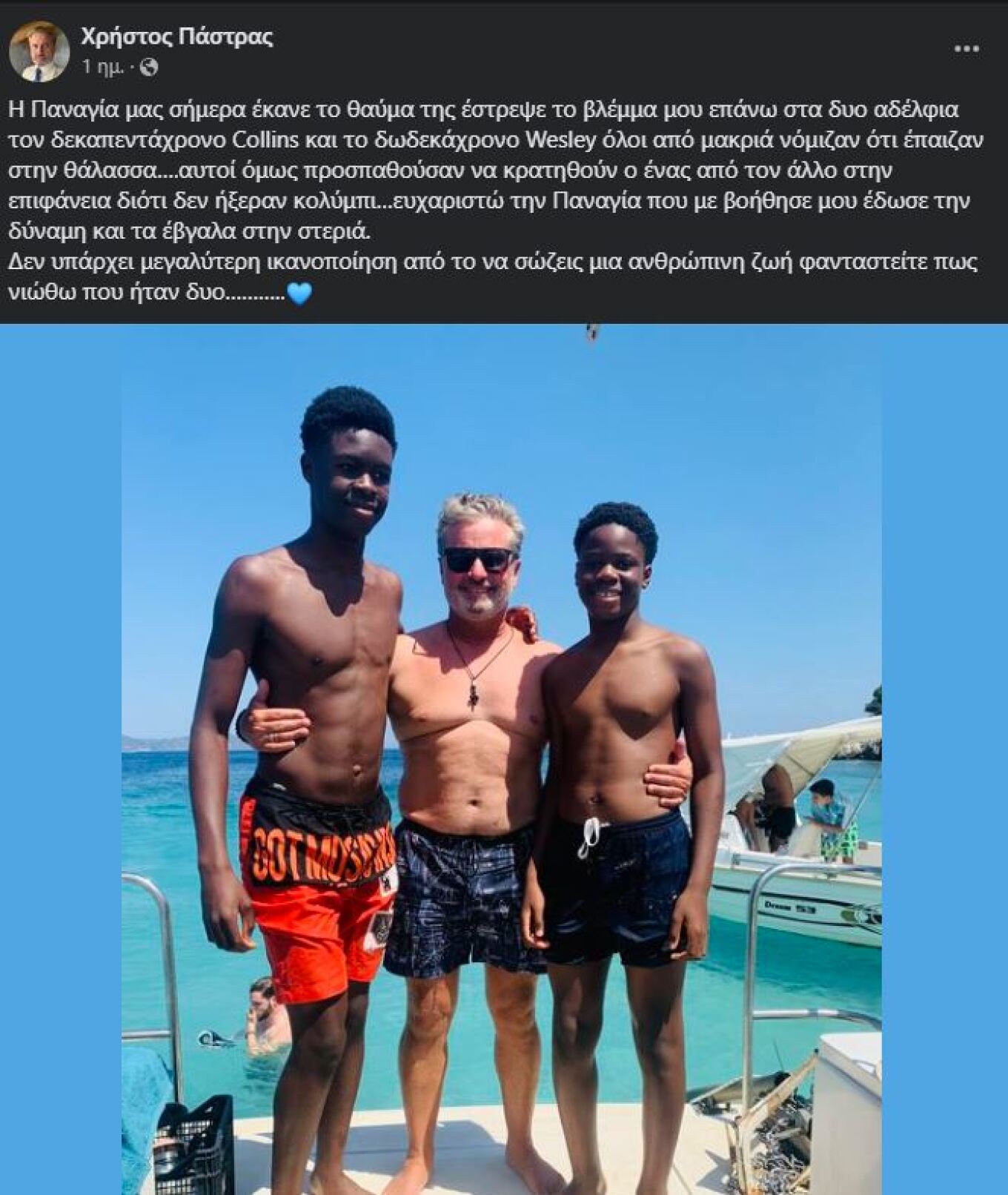 Τα δύο αγόρια, ηλικίας 12 και 15 ετών, προσπαθούσαν να κρατηθούν στην επιφάνεια του νερού, ενώ οι άνθρωποι γύρω τους νόμιζαν ότι έπαιζαν στη θάλασσα. Ο κ. Πάστρας κατάλαβε ότι κάτι δεν πήγαινε καλά και κατάφερε να τους σώσει, βγάζοντάς τους στη στεριά. Όπως δήλωσε ο ίδιος γεμάτος χαρά και ικανοποίηση μετά την καλή έκβαση της υπόθεσης, «η Παναγία έκανε το θαύμα της».
