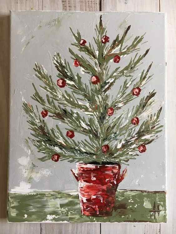 Αντί να στολίσετε δέντρο, ζωγραφίστε ένα σε καμβά και, με απλές πινελιές, φτιάξτε το δικό σας δέντρο σε ότι διάσταση επιθυμείτε.
