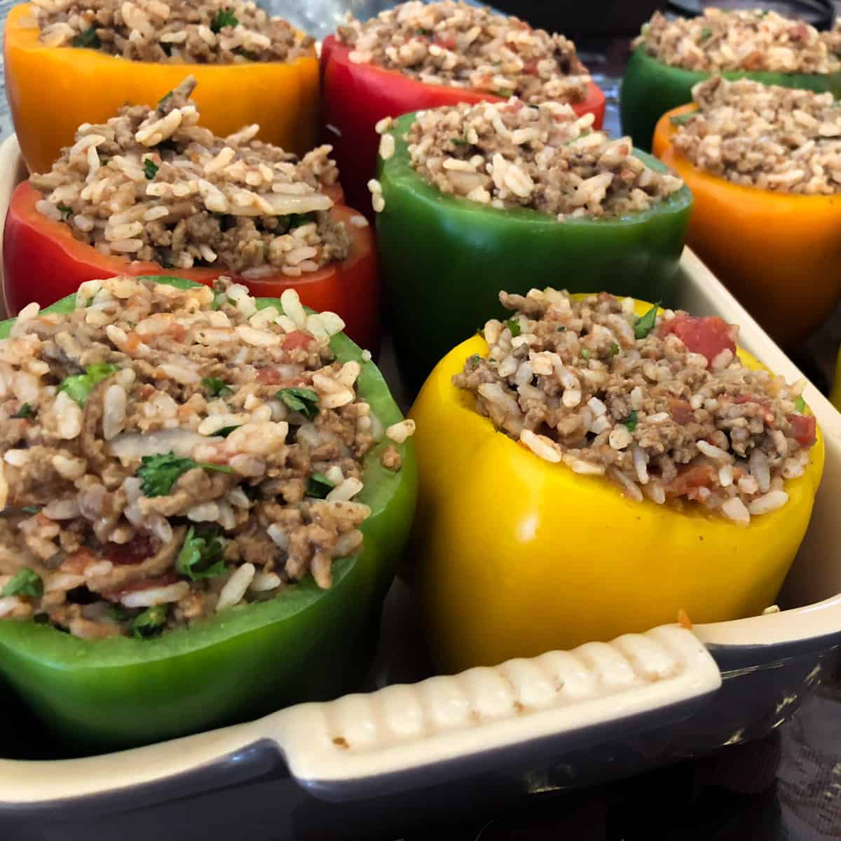 Καλύπτουμε τις πιπεριές με αλουμινόχαρτο και ψήνουμε για 25 λεπτά. Έπειτα το αφαιρούμε, και ψήνουμε για άλλα 20 λεπτά.