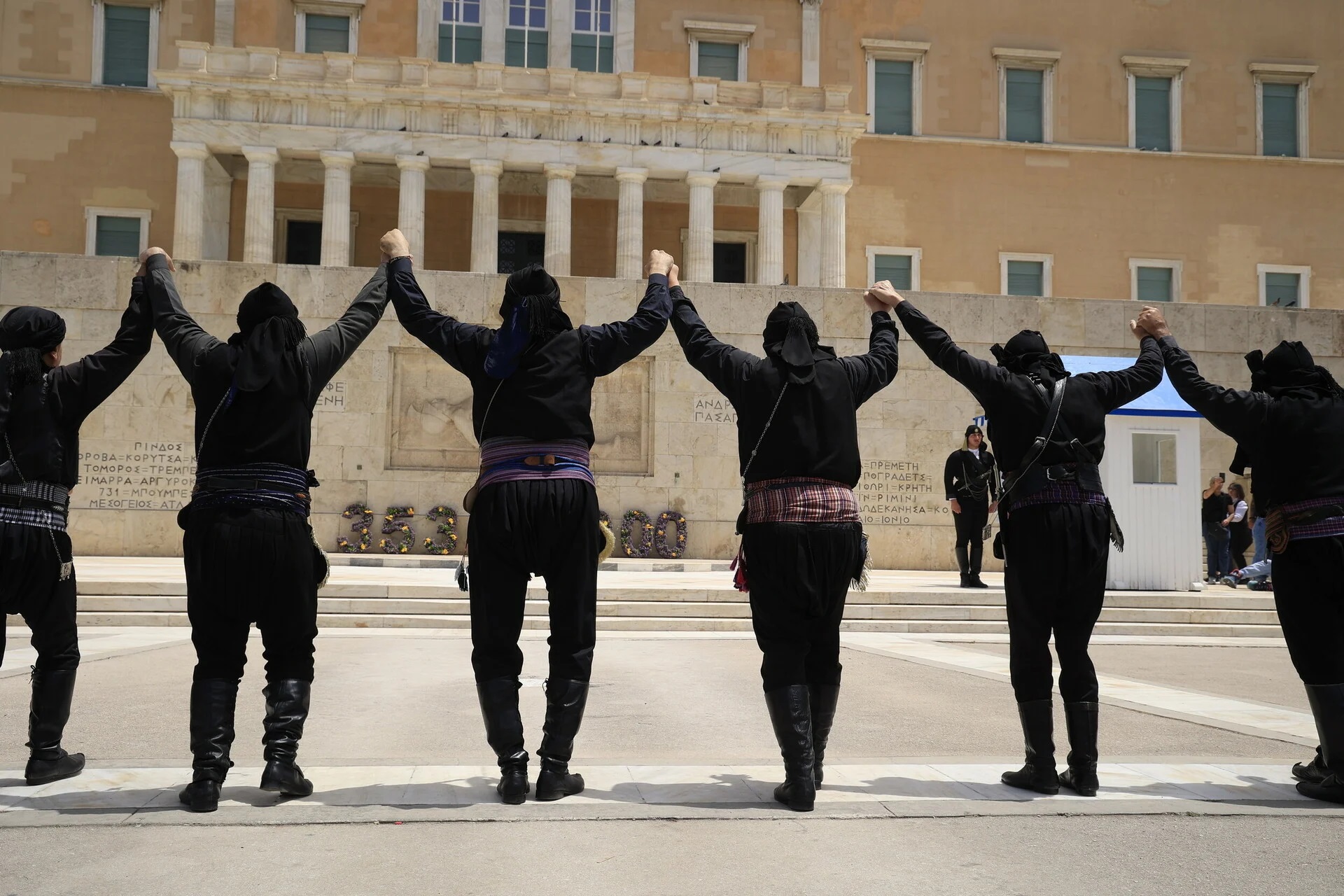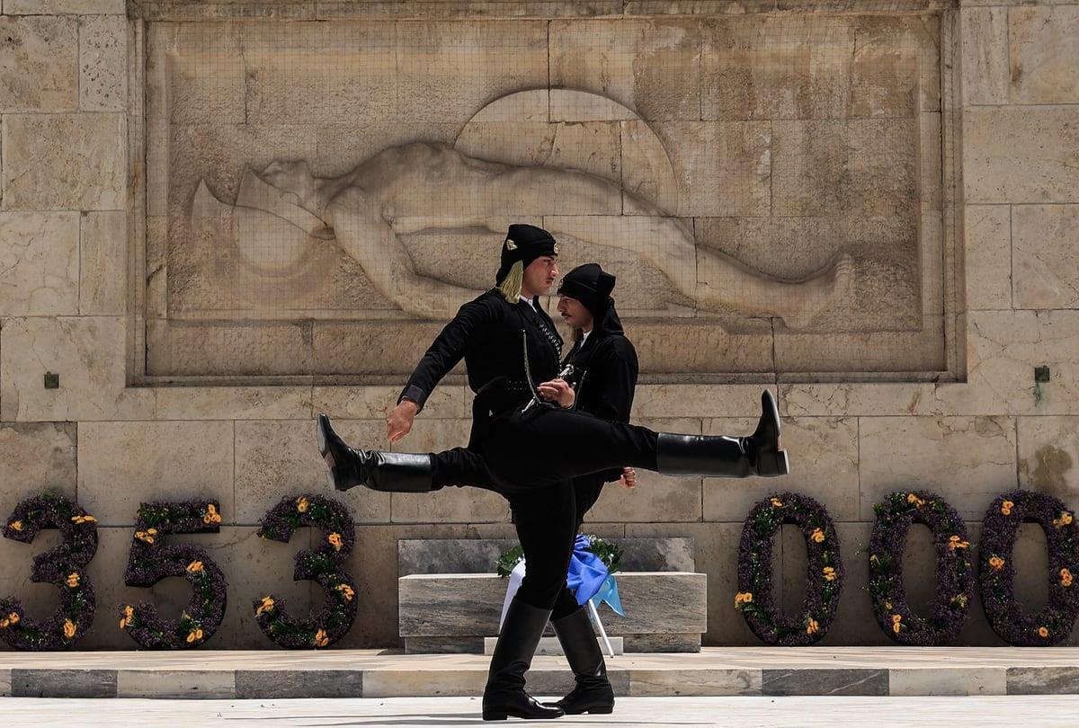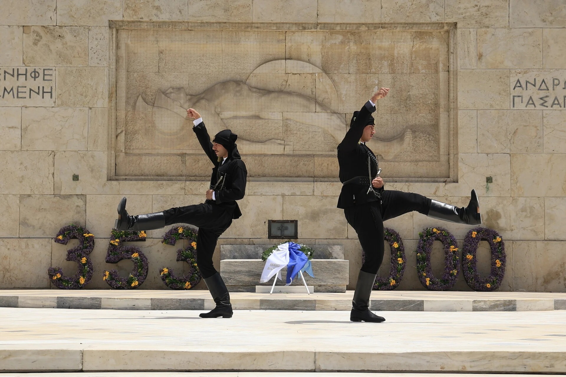 Mπροστά στο μνημείο του Άγνωστου Στρατιώτη ανέλαβαν την φύλαξη Εύζωνοι κάνοντας την αλλαγή φορώντας την ποντιακή στολή ενώ συγκινητική ήταν η στιγμή όταν μέλη ποντιακών συλλόγων χόρεψαν το χορό Σέρρα.