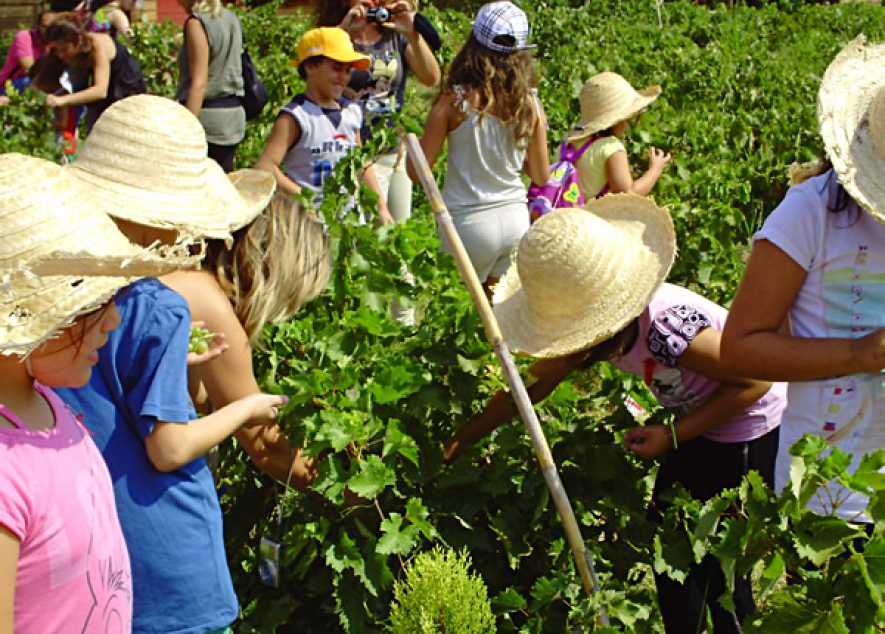Επισκεπτόμαστε τους Αμπελώνες του Πάρκου και τραγουδώντας, στρωνόμαστε στη δουλειά! Πρώτα πρώτα, τρυγάμε όλοι μαζί τα ώριμα σταφύλια. Αφού τρυγήσουμε, μεταφέρουμε τα γεμάτα καλαθάκια μας στα πέτρινα Πατητήρια του Πάρκου. Εκεί, ρίχνουμε τη σοδειά μας κι αφού βγάλουμε τα παπουτσάκια, όλοι μαζί ξεκινάμε το πάτημα των σταφυλιών μέχρι να βγει ο μούστος! Έπειτα, περνάμε κι από την Στροφιλιά, όπου βγάζουμε και τον τελευταίο χυμό από τα σταφύλια. Φτάνουμε στο τελικό στάδιο της οινοποίησης, που είναι η τοποθέτηση του μούστου σε βαρέλια και έπειτα η εμφιάλωση.