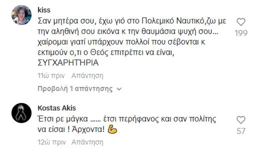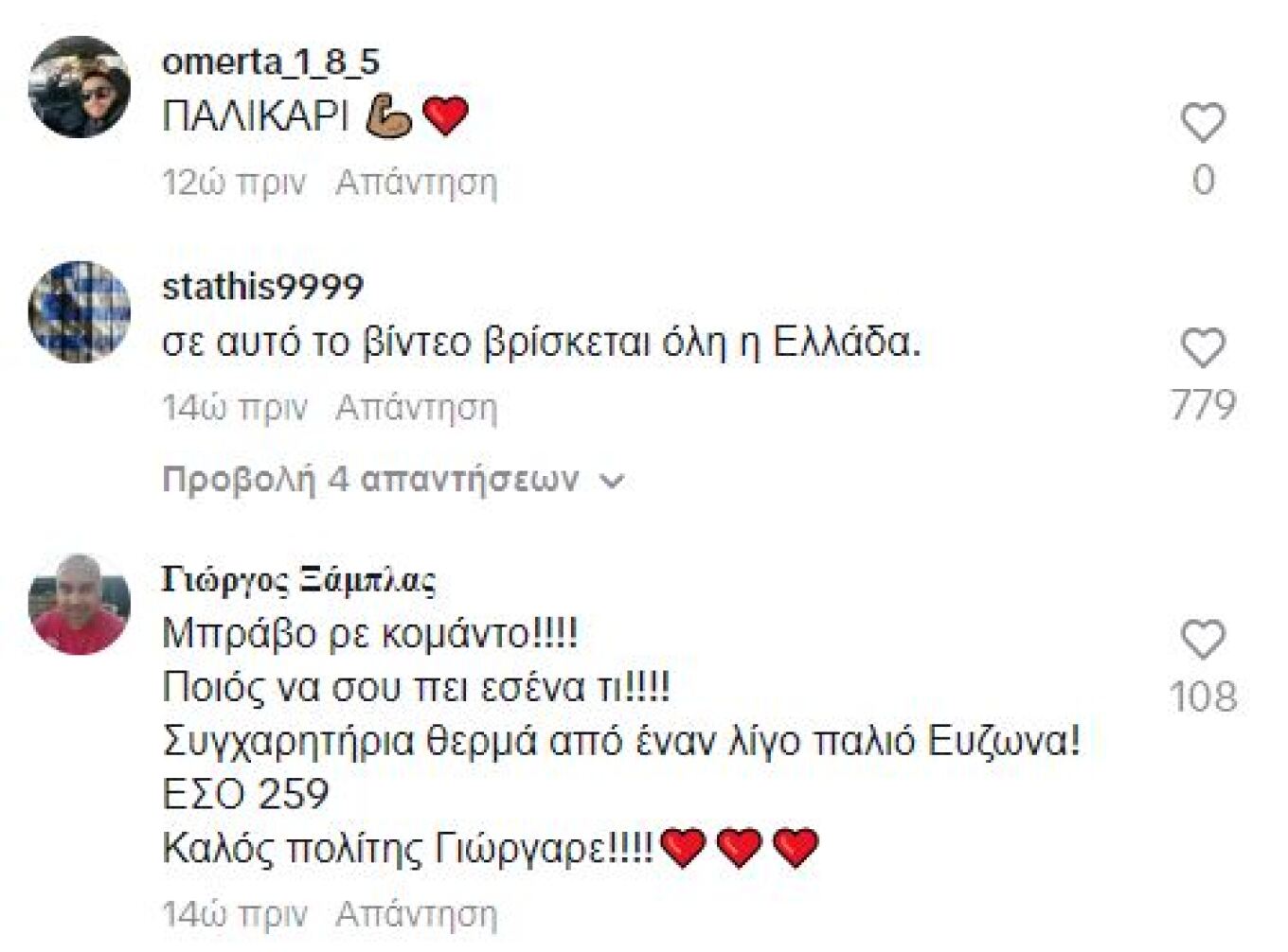 Όπως ήταν αναμενόμενο κάτω από την ανάρτηση τα περισσότερα από 3.500 σχόλια για το μέλος της Προεδρικής Φρουράς ήταν αποθεωτικά και συγκινητικά.