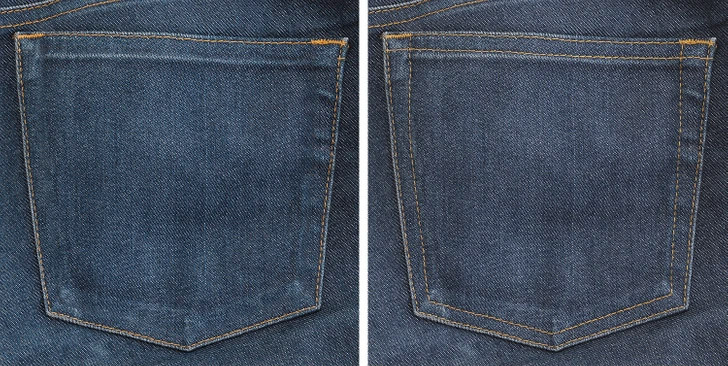 Τα κανονικά denim παντελόνια είναι πιο σκούρα απ' την έξω πλευρά σε σχέση με την έξω. Τα νήματα της μέσα πλευράς είναι συνήθως λευκά, γι' αυτό αν δεις στην εσωτερική πλευρά ακριβώς το ίδιο χρώμα, τότε μάλλον δεν θα ζήσει και πολύ το συγκεκριμένο παντελόνι.
