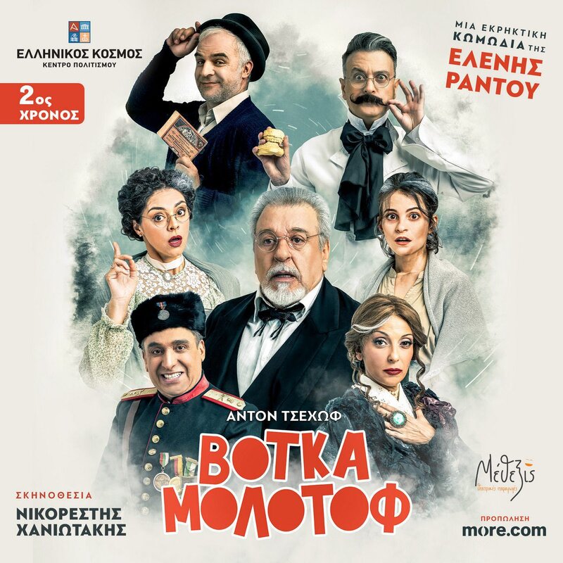 Η κωμική παράσταση «Βότκα Μολότοφ» της Ελένης Ράντου, βασισμένη στη διασκευή του Νηλ Σάιμον πάνω στα διηγήματα του Τσέχωφ παρουσιάζεται στην αίθουσα Ιφιγένεια του Κέντρου Πολιτισμού «Ελληνικός Κόσμος»! Μετά τα συνεχή sold out της καλοκαιρινής περιοδείας σε όλη την Ελλάδα και τη μεγάλη επιτυχία που είχε σημειώσει στο «Αίθριο» του «Ελληνικού Κόσμου» συνεχίζεται για δεύτερη χρονιά, σε μία εντυπωσιακή παραγωγή από την εταιρεία «Μέθεξις» του Χρήστου Τριπόδη από τις 2 Νοεμβρίου.
