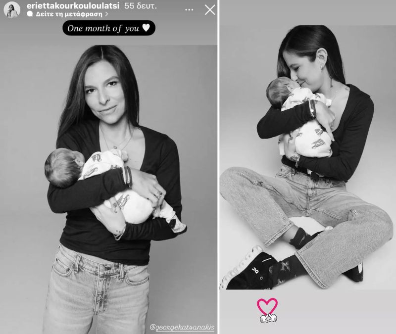 Το μεσημέρι της Κυριακής 12 Ιανουαρίου, προχώρησε σε τρυφερές αναρτήσεις μέσα από στόρυ, στον λογαριασμό της στο Instagram. Όπως θα δεις, κοινοποίησε δύο φωτογραφίες της αγκαλιά με τον δεύτερο γιο της κι έγραψε στα αγγλικά: «Ένα μήνα μαζί σου». Το φωτογραφικό «κλικ» ανήκει στον Γιώργο Κατσανάκη.