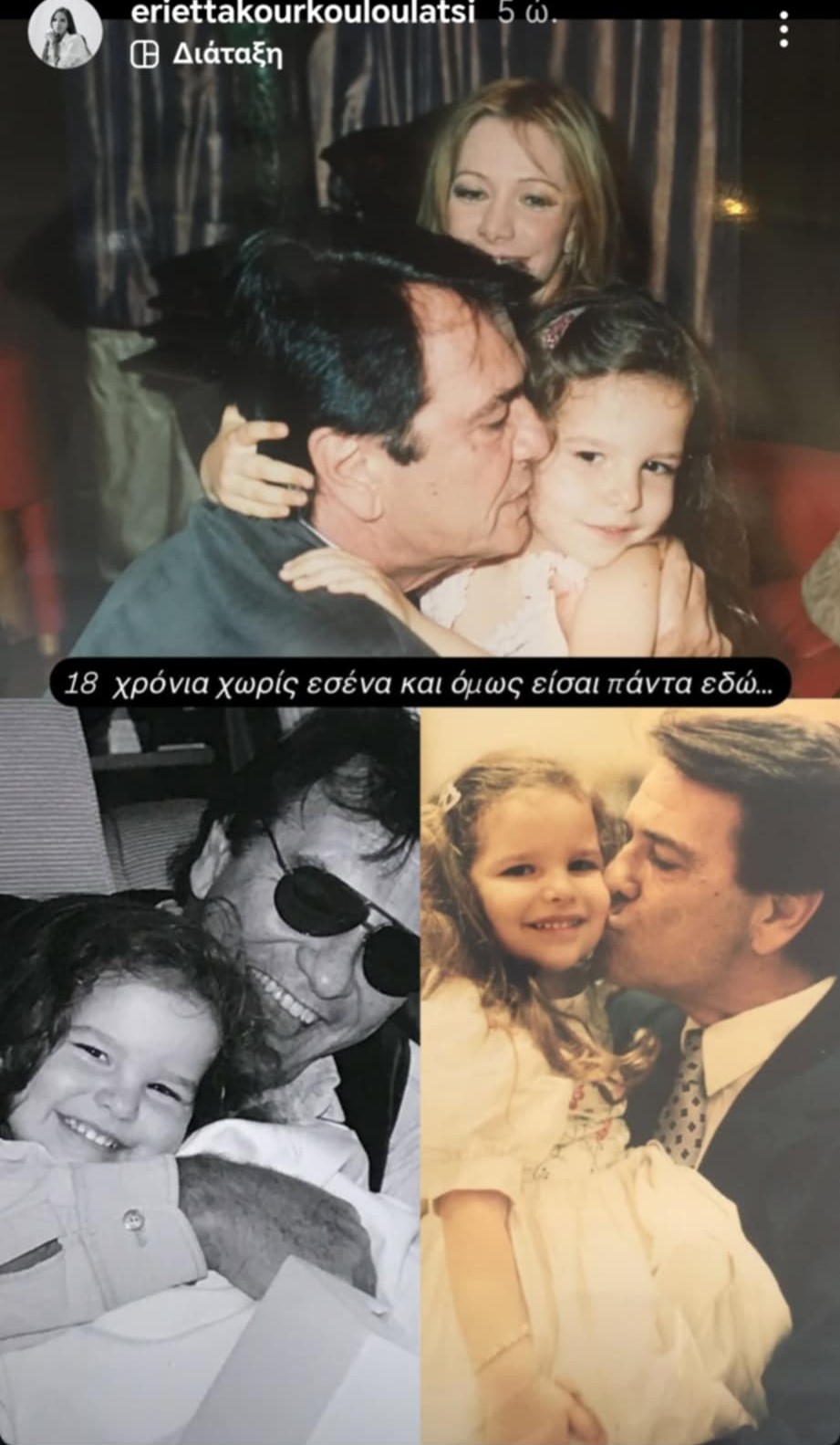 Η Εριέττα Κούρκουλου Λάτση, το πρωί της Πέμπτης, προχώρησε σε μια ανάρτηση στον προσωπικό της λογαριασμό στο Instagram, ανεβάζοντας τρεις φωτογραφίες όπου βλέπουμε την ίδια σε πολύ μικρή ηλικία στην αγκαλιά του πατέρα της.