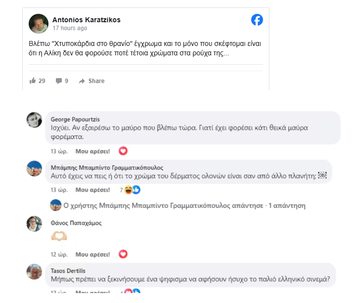 Σε περίπτωση που δεν έχετε δει την ταινία, τις χιλιάδες φορές που έχει παίξει στην τηλεόραση, τα «Χτυποκάρδια στο Θρανίο» είναι ελληνική ρομαντική κομεντί του 1963, σε σκηνοθεσία Αλέκου Σακελλάριου και σενάριο του ίδιου και του Χρήστου Γιαννακόπουλου. Πρωταγωνιστούν η Αλίκη Βουγιουκλάκη και ο Δημήτρης Παπαμιχαήλ.