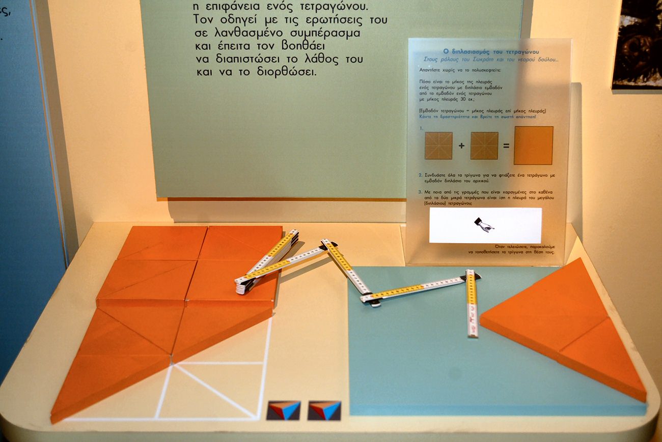 Ψηφιακές εφαρμογές συνυπάρχουν με φυσικά διαδραστικά εκθέματα, όπως κατασκευές και προσφέρουν στον επισκέπτη μια μοναδική «ζωντανή» περιήγηση στον κόσμο των αρχαίων ελληνικών μαθηματικών. Τα παιδιά μαθαίνουν παίζοντας και οι ενήλικοι μαγεύονται από τη γοητεία της μαθηματικής επιστήμης.