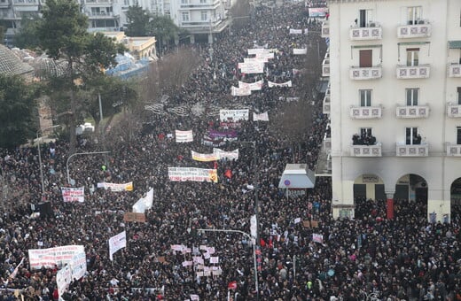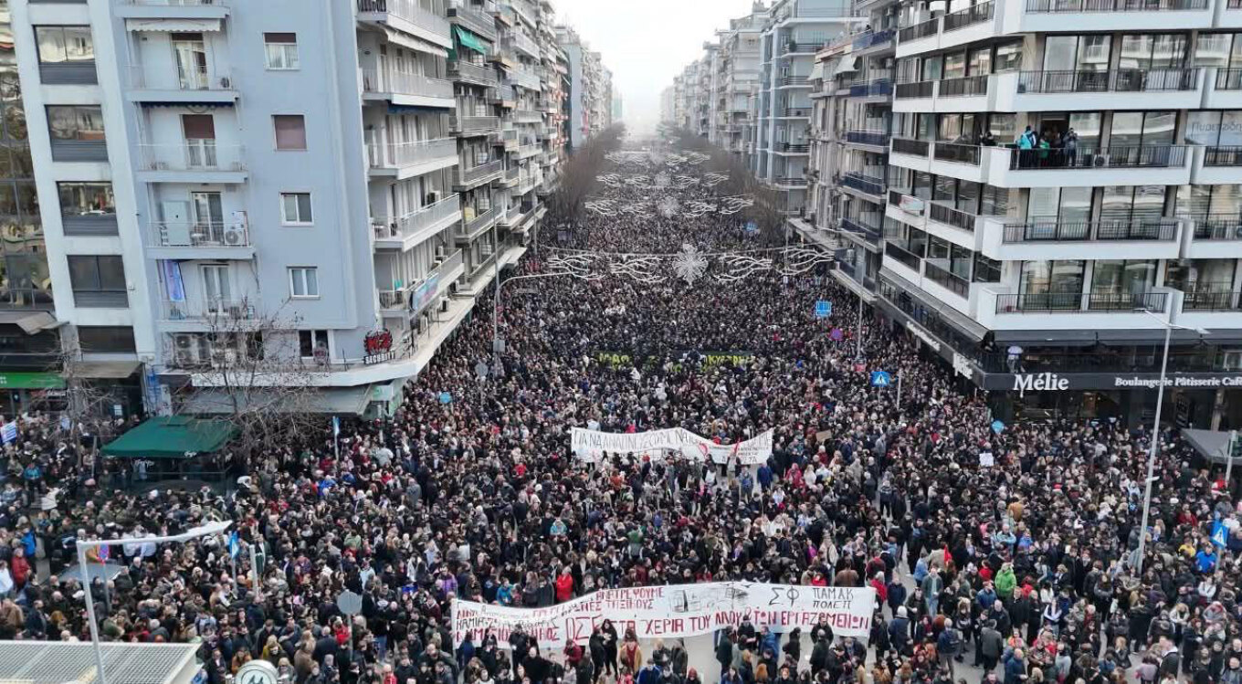 Πλήθος κόσμου κατέβηκε και στο κέντρο της Θεσσαλονίκης για να διαδηλώσει για την επέτειο των δυο χρόνων από την τραγωδία των Τεμπών.