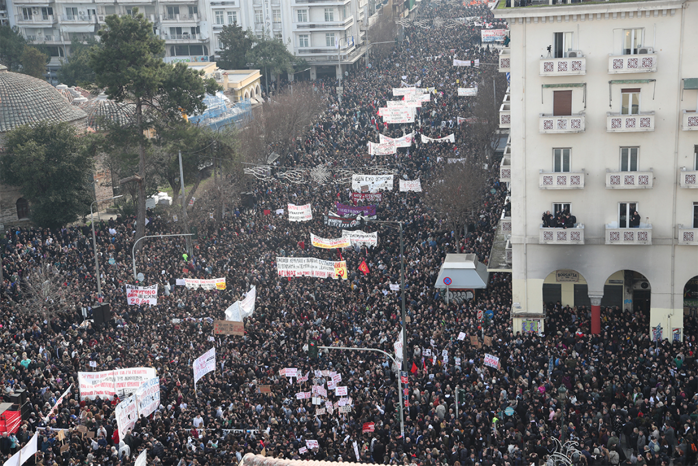 Μαθητές, σωματεία, συνδικάτα, αγρότες, συγκεντρώθηκαν στην κεντρική πλατεία κρατώντας πανό, φωνάζοντας συνθήματα, απαιτώντας απόδοση ευθυνών και δικαιοσύνη.