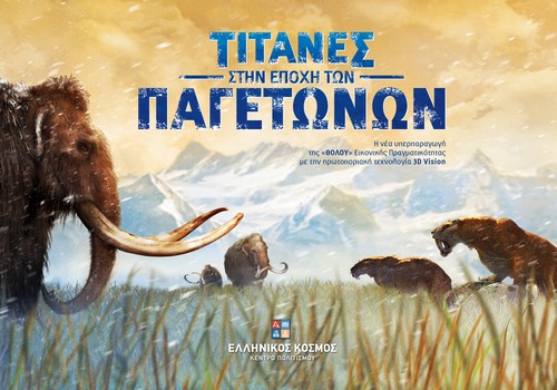 Η νέα ταινία Θόλου «Τιτάνες στην Εποχή των Παγετώνων» ξαναζωντανεύει μία σκληρή και όμορφη εποχή, τότε που αιλουροειδή με κοφτερά δόντια, γιγαντιαίοι βραδύποδες και τριχωτά μαμούθ κατοικούσαν στη Γη, ενώ οι αρχαίοι πρόγονοί μας ανέπτυσσαν τέχνη, γλώσσα και κυνηγετικές δεξιότητες, προσπαθώντας να κατανοήσουν και να επιβιώσουν στο σκληρό κόσμο γύρω τους.