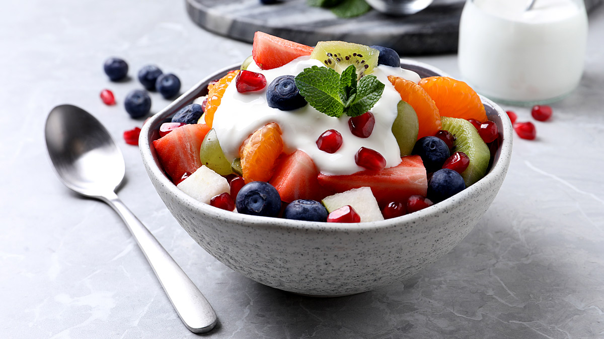 Ένας πολύχρωμος συνδυασμός φρούτων όπως μπανάνα, φράουλα και μήλο, ανακατεμένος με στραγγιστό γιαούρτι και λίγο μέλι, είναι μια τέλεια επιλογή για ένα δροσιστικό και θρεπτικό σνακ. Μπορείς να το τοποθετήσεις σε ένα αεροστεγές δοχείο για να παραμείνει φρέσκο.