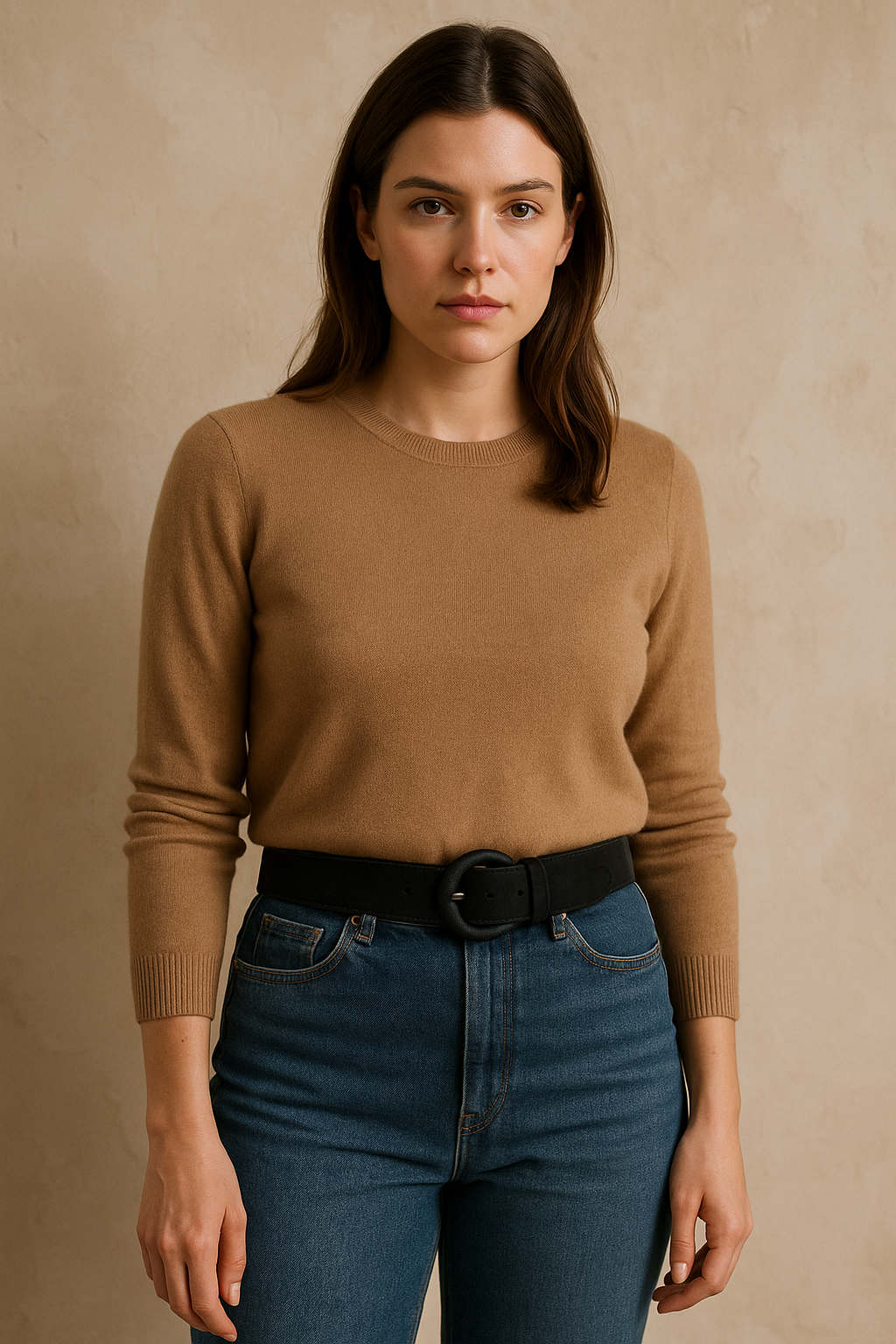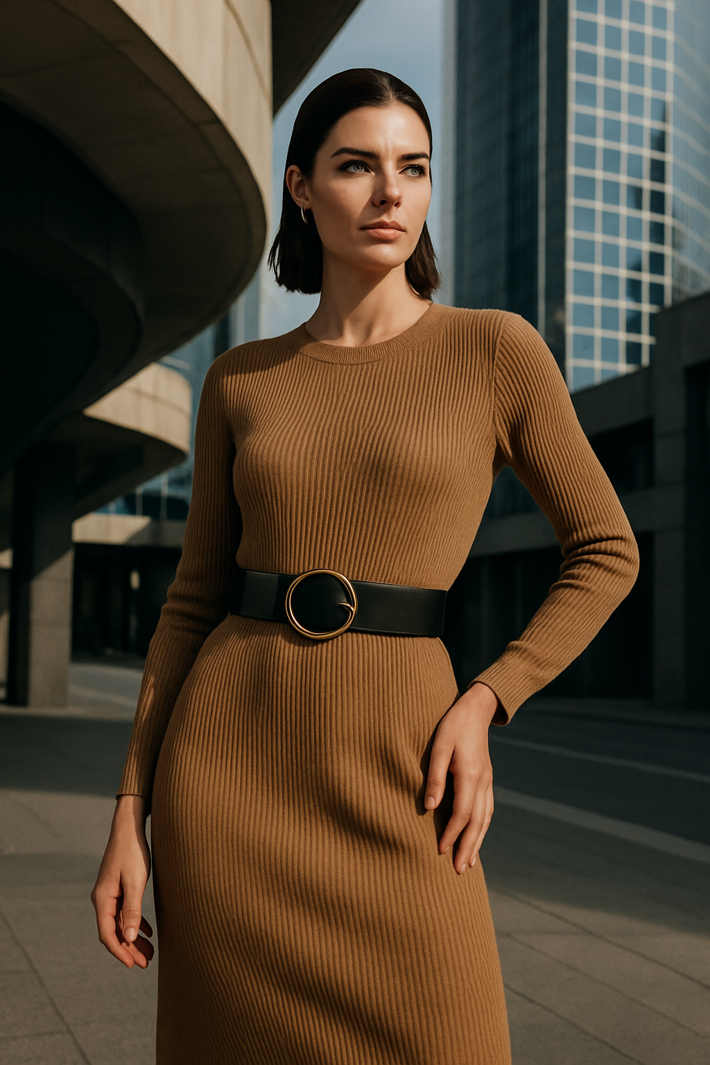 Αν θες να καμουφλάρεις, συνδύασε τη ζώνη με το χρώμα του ρούχου — όχι αντίθεση. Για παράδειγμα, μαύρη ζώνη με μαύρο φόρεμα ή μπεζ με καμηλό πανωφόρι. Έτσι δεν «κόβεται» το σώμα στη μέση.