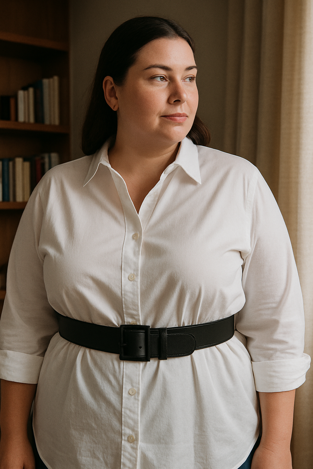 Ένα φαρδύ φόρεμα ή oversized πουκάμισο μπορεί να δείχνει «σακί» χωρίς ζώνη, αλλά με τη σωστή εφαρμογή στη μέση, αποκτά σχήμα χωρίς να κολλάει στην κοιλιά. Το κόλπο είναι να δέσεις τη ζώνη χαλαρά και να αφήσεις λίγο ύφασμα να «φουσκώνει» πάνω από αυτή.