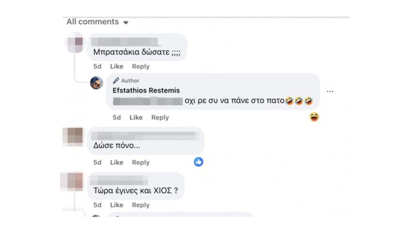 Και σαν να μην έφταναν αυτό το (κακό) κερασάκι στην τούρτα έβαλε ο Γενικός Γραμματέας του Δήμου Χίου, Ευστάθιος Ρεστέμης, προχώρησε σε μια σειρά αισχρών αναρτήσεων ευχόμενος μέχρι «να πάνε στον πατό» για τους μικρούς αθλητές πόλο του Παναθηναϊκού. Σε άλλη ανάρτησή του, δε, και αναφερόμενος στα παιδιά του Παναθηναϊκού έγραφε: «Λαγέ όπου σε βρω θα σε πονώ».