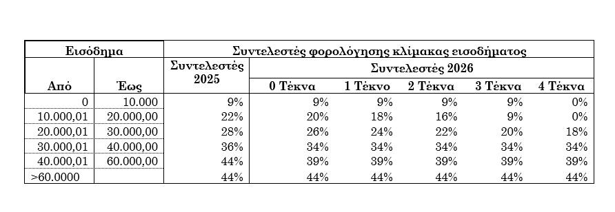 - Καθιερώνεται ενδιάμεσος συντελεστής 39% από 44% σήμερα.Μίλησε για γενναία τομή υπέρ των νέων: Μηδενικός φόρος για εργαζόμενους έως 25 ετών και εισόδημα μέχρι 20.000 ευρώ και μείωση στο 9% από 22% μέχρι τα 30 τους: