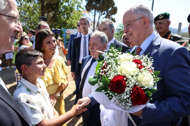 Ο μοναδικός μαθητής του νησιού, ο 10χρονος Σάββας, ο οποίος φέτος θα φοιτήσει στην Ε΄Δημοτικού και η δασκάλα του, η Δέσποινα Μιχαήλ, που προσφέρει για δεύτερη χρονιά τις υπηρεσίες της στο νησί, υποδέχθηκαν τον Πρόεδρο της Δημοκρατίας και τον ξενάγησαν στους χώρους του μικρού σχολείου, το οποίο είναι φτιαγμένο με μεράκι και ιδιαίτερη φροντίδα για τον μικρό μαθητή.