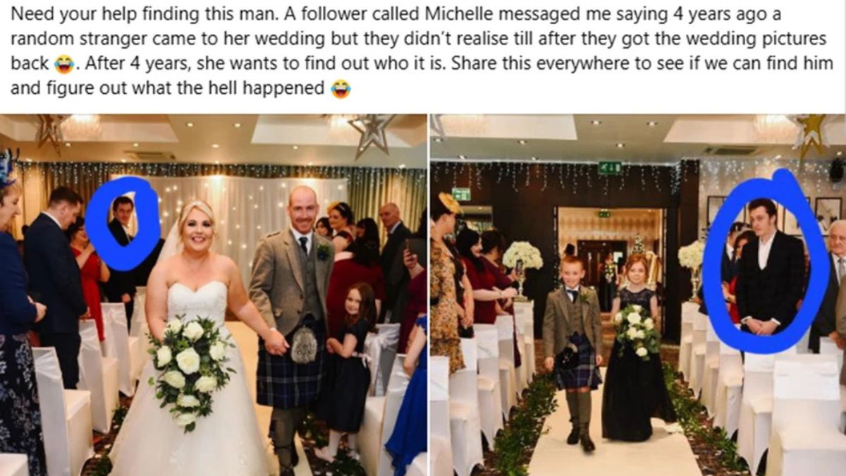 Η Μισέλ Γουάιλι πάντα αναρωτιόταν ποιος ήταν ο «τυχαίος μελαχρινός άγνωστος» που εμφανιζόταν σε φωτογραφίες από τη μεγάλη ημέρα της και κανείς δεν μπορούσε να τον αναγνωρίσει. Ο άνδρας φαινόταν να στέκεται στον διάδρομο και στο πίσω μέρος της ομαδικής φωτογραφίας του γάμου της Μισέλ και του συζύγου της, Τζον. Οι προηγούμενες προσπάθειες να ταυτοποιηθεί παρέμεναν ανεπιτυχείς, αλλά μια πρόσφατη ανάρτηση στο Facebook αποκάλυψε την αληθινή και αστεία ιστορία πίσω από τον «εισβολέα γάμου».