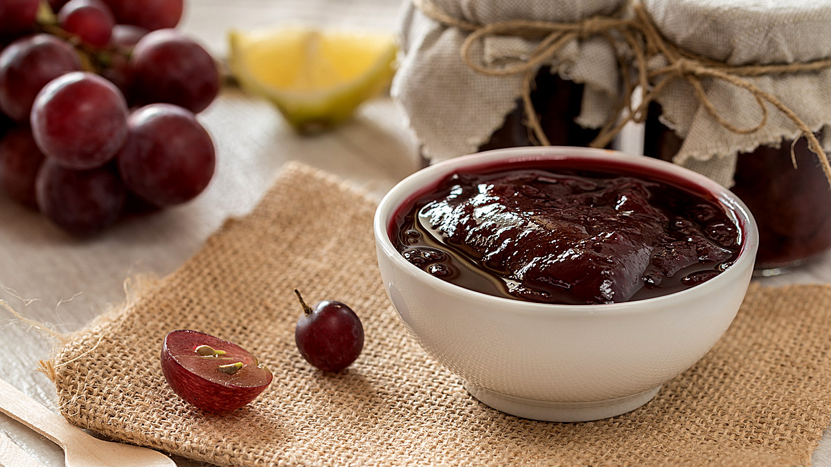 Η μαρμελάδα σταφύλι ταιριάζει τέλεια με ψωμί, κρουασάν, αλλά και με τυριά σε πλατό.