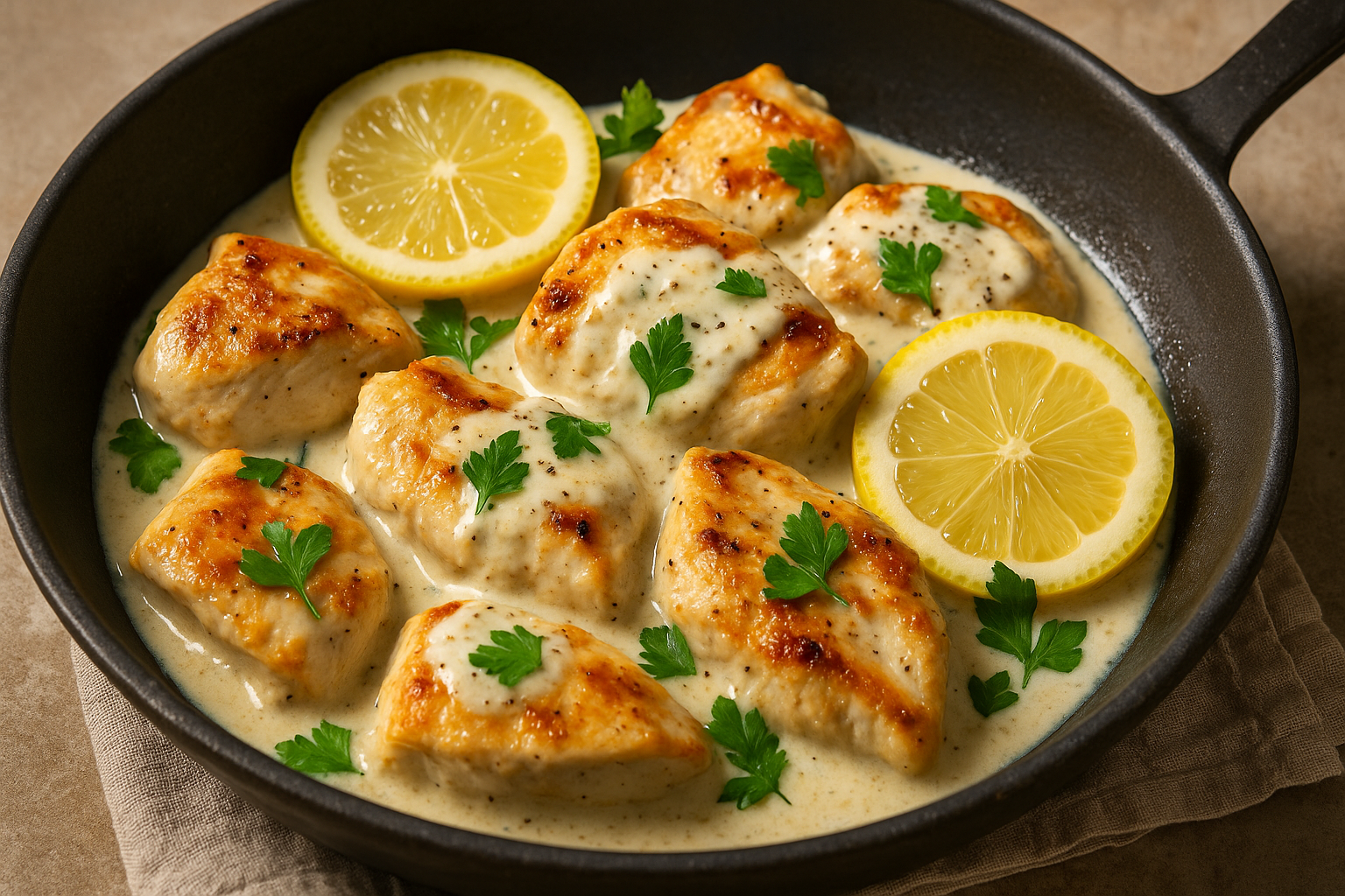 Κοτόπουλο στο τηγάνι με γιαούρτι και λεμόνι