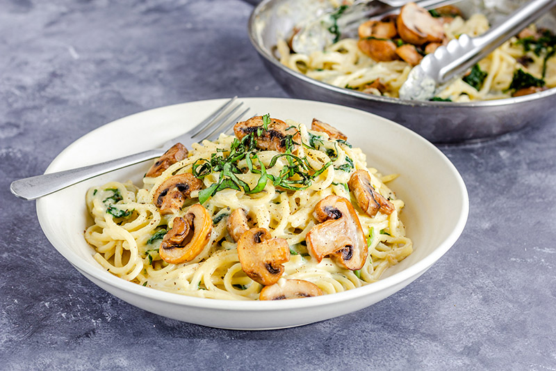 1. Μακαρόνια με σπανάκι και μανιτάρια