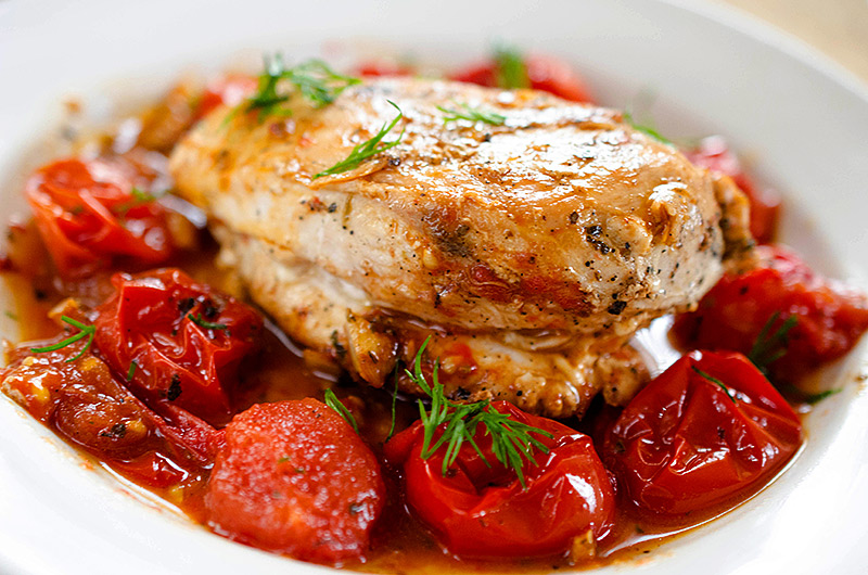 2. Φιλέτο κοτόπουλο με ντοματίνια και βασιλικό