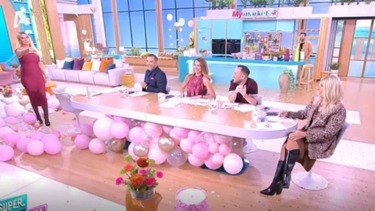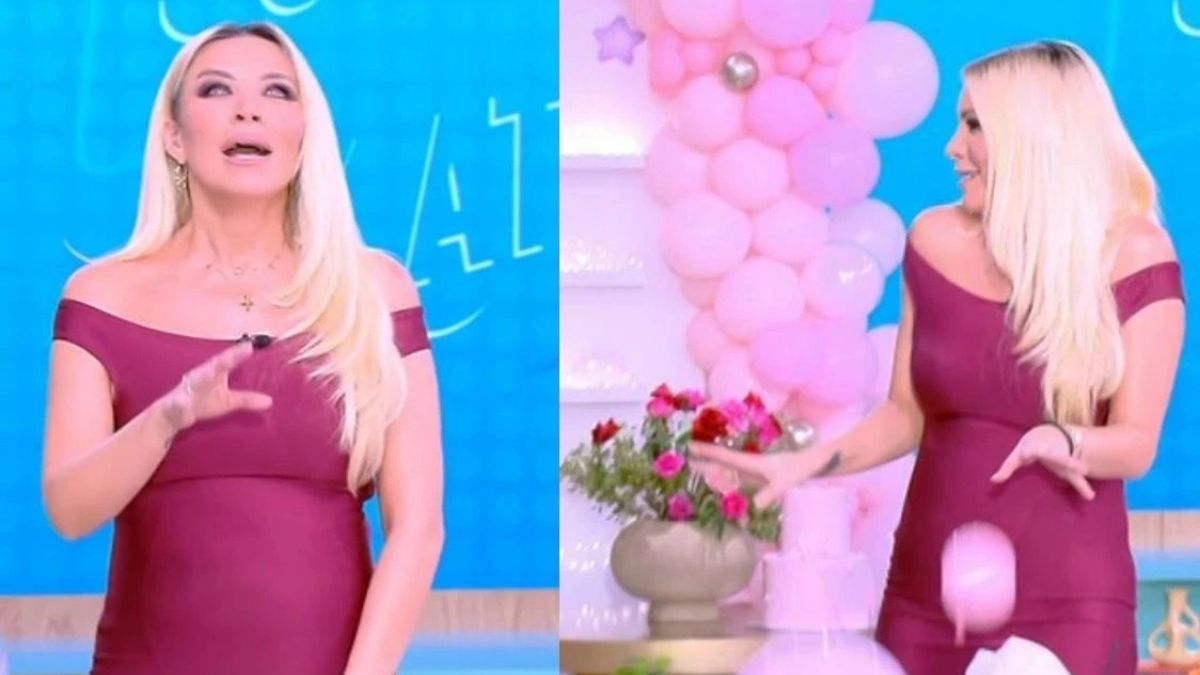 Το πλατό σήμερα ήταν γεμάτο ροζ μπαλόνια ενώ η παρουσιάστρια έκανε είσοδο με το τραγούδι Mamma Mia, φορώντας ένα απίθανο ροζ φόρεμα που αναδείκνυε την φουσκωμένη της κοιλίτσα. Με αυτόν τον τρόπο αποκάλυψε και το φύλο του μωρού που περιμένει, που φυσικά είναι κορίτσι!