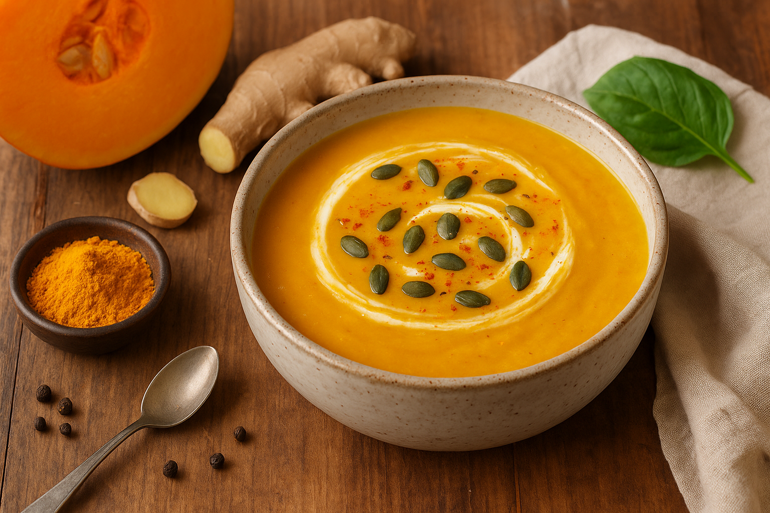 Σούπα κολοκύθας με τζίντζερ και κουρκουμά