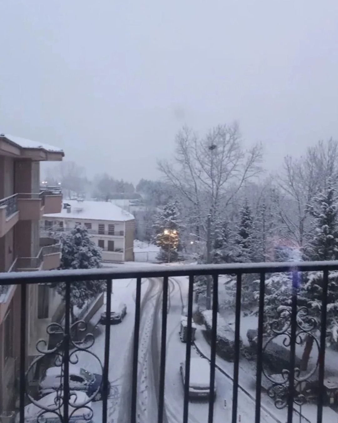 Πυκνή χιονόπτωση μέσα στην πόλη των Τρικάλων