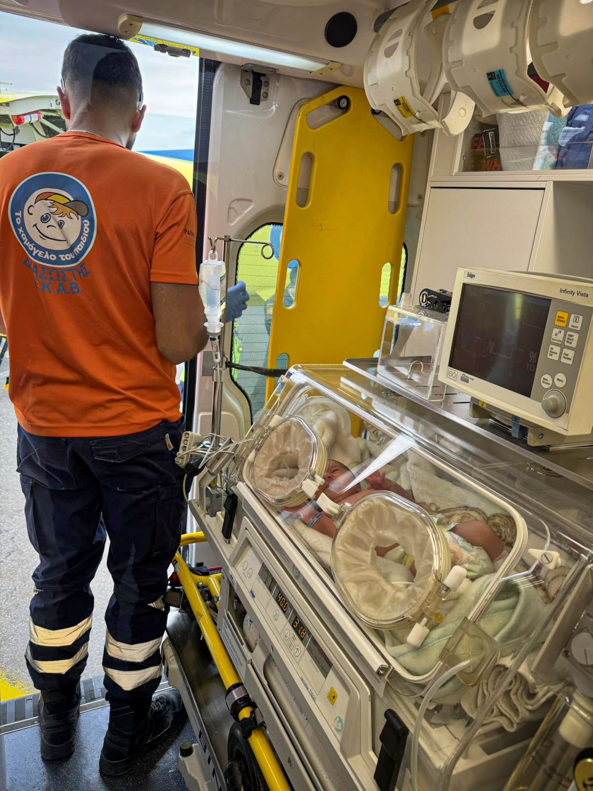 «Σήμερα το απόγευμα δεχθήκαμε κλήση από το ΕΚΑΒ για μια επείγουσα διακομιδή. Η Κινητή Ιατρική Μονάδα Εντατικής Θεραπείας Νεογνών και Παιδιών του Οργανισμού μας, με τη θερμοκοιτίδα, ανέλαβε τη μεταφορά ενός νεογέννητου αγοριού μόλις 5 ημερών. Το μικρό αγγελούδι ταξίδεψε από τη Ρόδο με το αεροσκάφος αεροδιακομιδών του ΕΚΑΒ και μεταφέρθηκε με ασφάλεια στη Μονάδα Εντατικής Θεραπείας Νεογνών του Βενιζελείου Νοσοκομείου στο Ηράκλειο. Στο πλευρό του, σε αυτή τη δύσκολη αλλά ελπιδοφόρα διαδρομή, βρέθηκαν οι διασώστες του Οργανισμού μας, ο ιατρός του ΕΚΑΒ και ο πατέρας του — μια πορεία γεμάτη αγωνία, πίστη και αγάπη. Ευχόμαστε ολόψυχα στο μικρό μας αγόρι να γίνει σύντομα καλά και η οικογένειά του να μπορέσει πολύ γρήγορα να τον κρατήσει υγιή και χαμογελαστό στην αγκαλιά της»