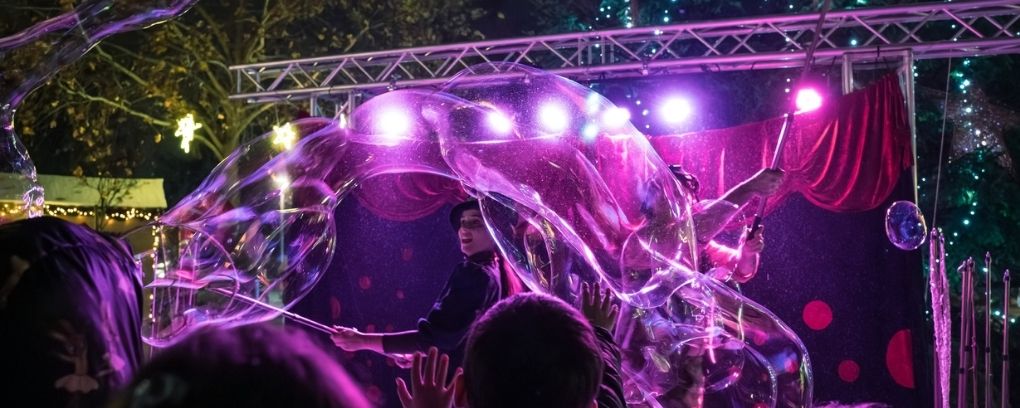 Στο Bubble Show, μικροί και μεγάλοι μπαίνουν σε έναν ονειρικό κόσμο όπου όλα μεταμορφώνονται. Οι θεατές γίνονται συν-δημιουργοί ενός φευγαλέου κόσμου φτιαγμένου από αγάπη, νερό και σαπούνι.