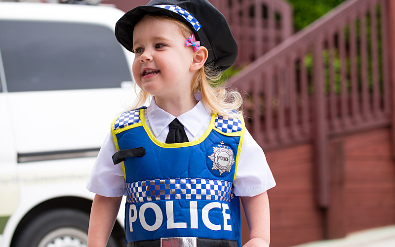 Ο Αιγόκερως παίρνει τον ρόλο σοβαρά. Η στολή αστυνομικού με καπέλο και σήμα του ταιριάζει γιατί συμβολίζει τάξη και ευθύνη. Θα οργανώσει το παιχνίδι και πιθανόν να βάλει κανόνες.