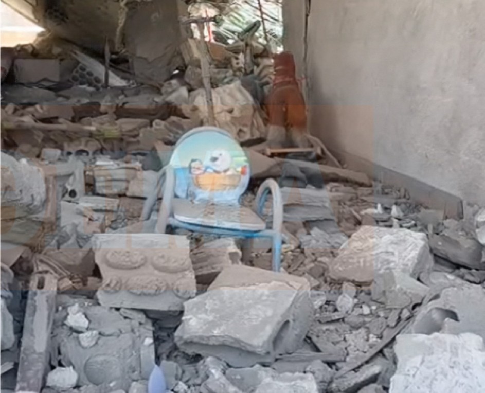 Οι εικόνες που μετέδωσε ο απεσταλμένος του protothema.gr, Μαρίνος Αλειφέρης, από το σημείο της επίθεσης, αποτυπώνουν το μέγεθος της καταστροφής. Το σπίτι της οικογένειας έχει μετατραπεί σε σωρό ερειπίων, με προσωπικά αντικείμενα της οικογένειας να είναι διασκορπισμένα παντού.