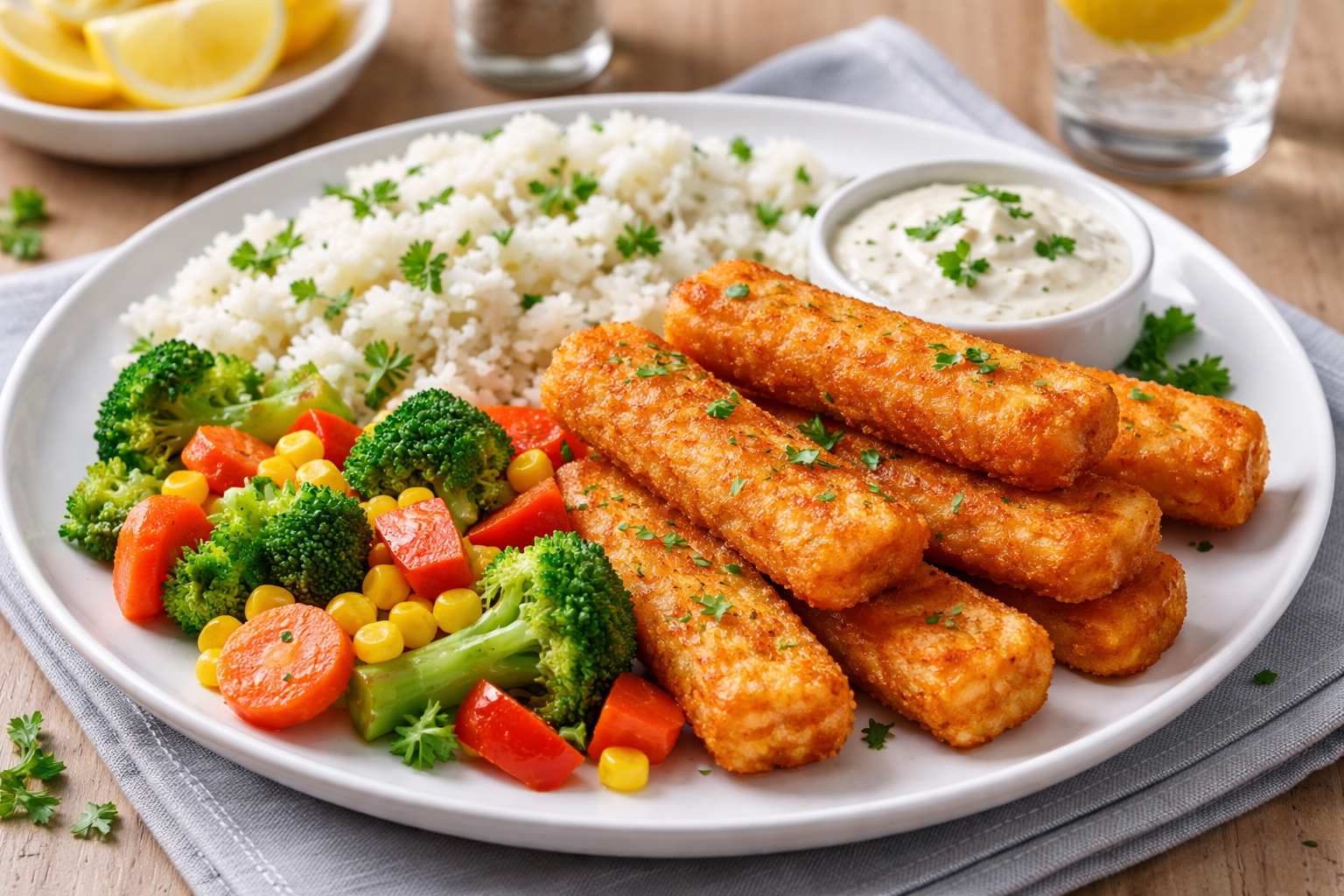 5. Fish sticks στο air fryer με ρύζι και λαχανικά