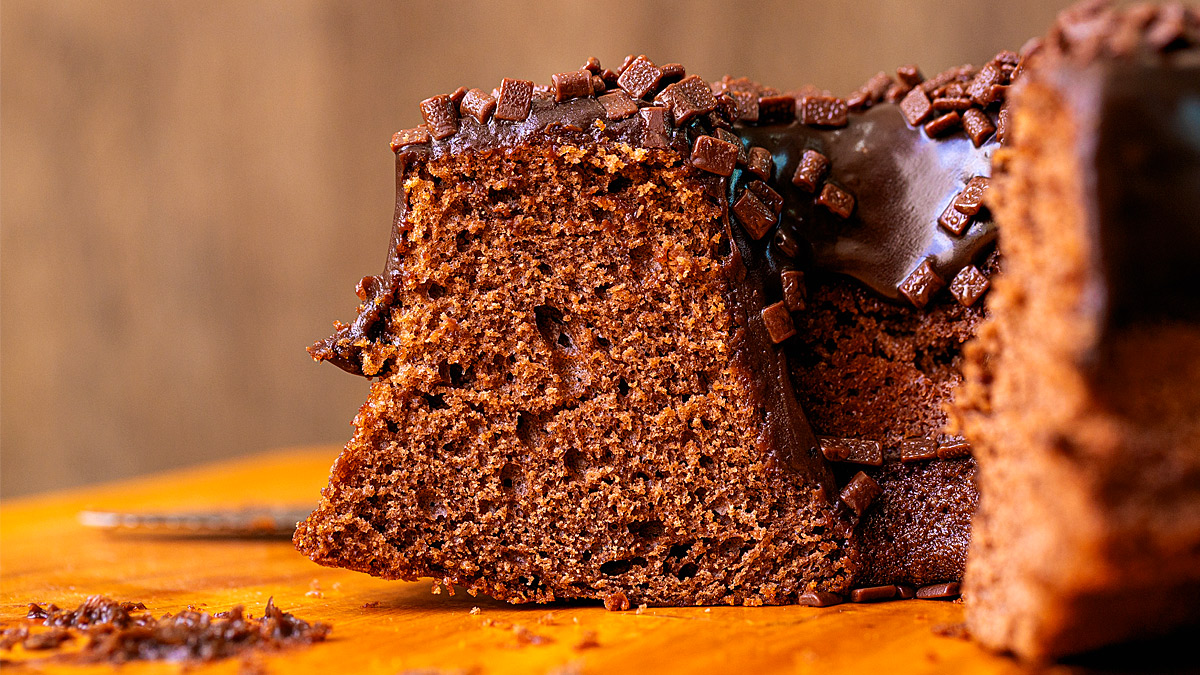 Αφήνουμε το κέικ να κρυώσει ελαφρώς πριν το κόψουμε, για να σταθεροποιηθεί η υφή του.